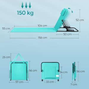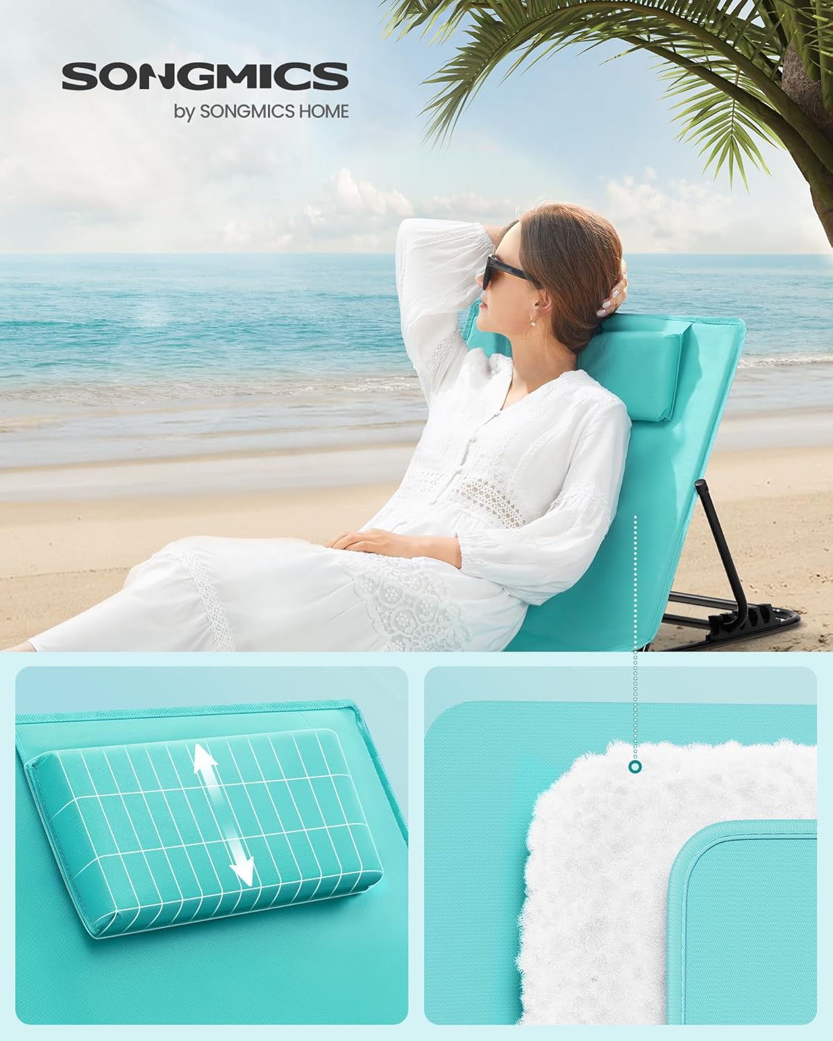 Sezlongul pliabil SONGMICS este alegerea perfecta pentru relaxare oriunde, datorita designului usor si portabil. Spatarul reglabil in 4 pozitii permite ajustarea pentru confort maxim, iar materialul rezistent asigura durabilitate in utilizare. Ideal pentru plaja, gradina sau camping.