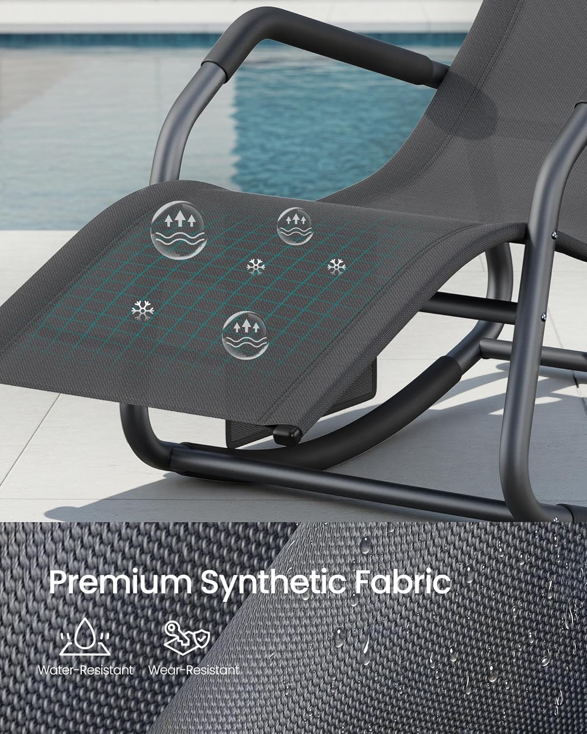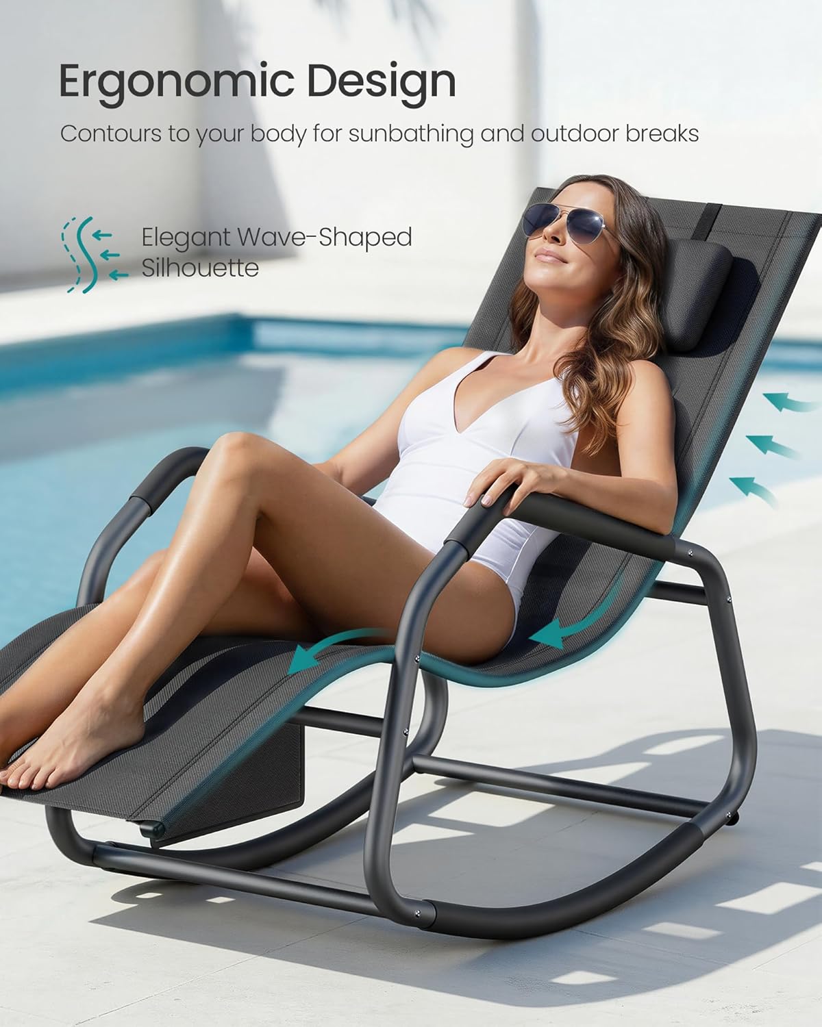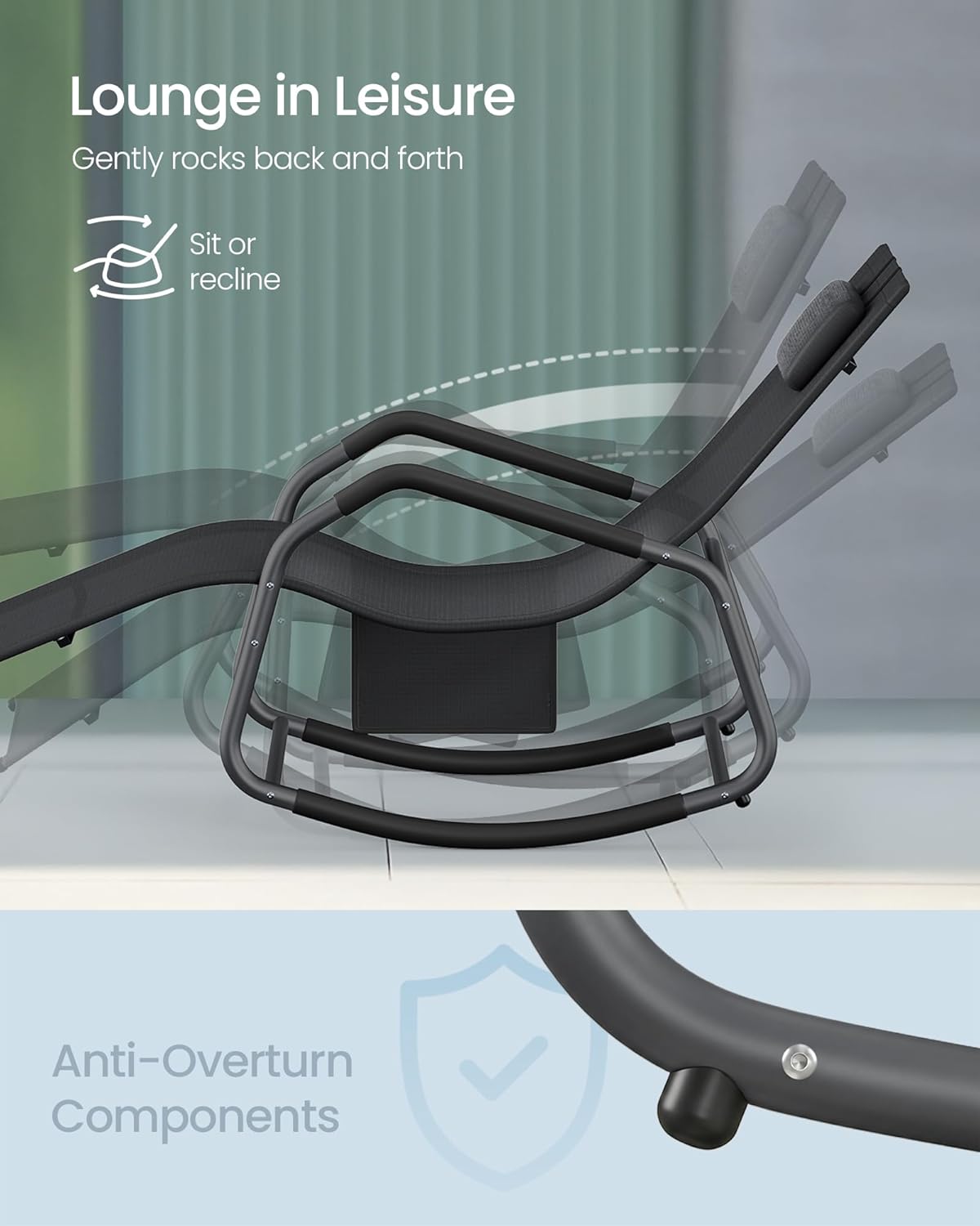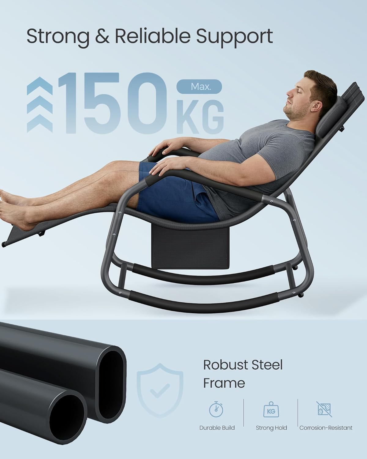 Sezlongul balansoar SONGMICS este perfect pentru relaxare in aer liber, fie ca stai la soare, citesti sau pur si simplu te odihnesti. Forma ergonomica sustine corpul in mod confortabil, iar tetiera reglabila iti permite sa iti gasesti rapid pozitia ideala. Miscarea usoara de balans adauga un plus de relaxare, fie ca il folosesti in gradina, pe terasa sau pe balcon.