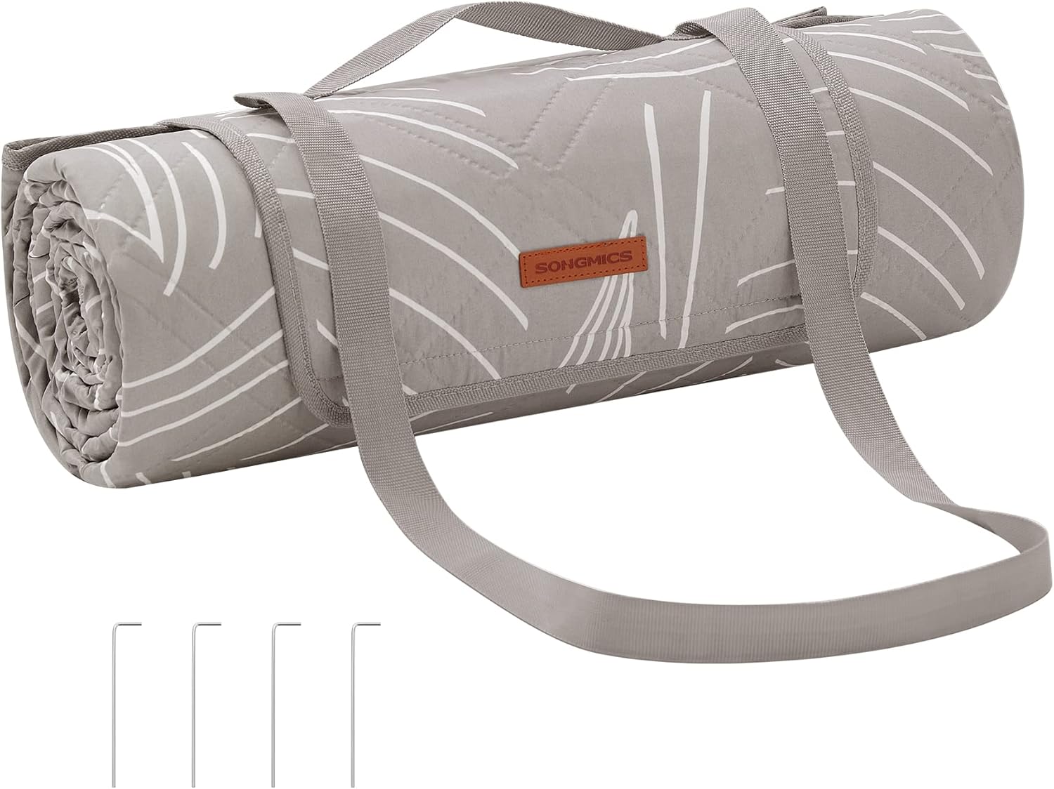 SONGMICS Patura picnic impermeabila 300×200 cm, cu ancore de fixare, pliabila, lavabila, multistrat, kaki cu model tropical