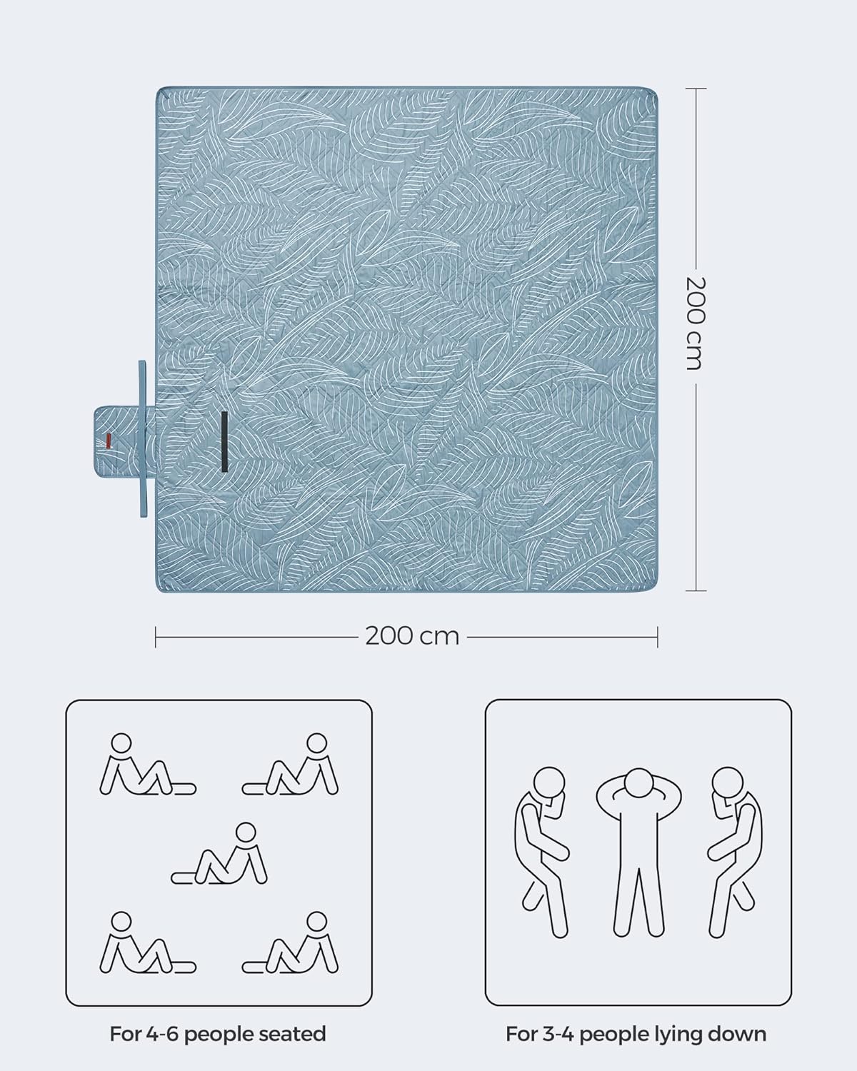 Patura de picnic SONGMICS este practica si confortabila, ideala pentru iesiri in natura. Cu dimensiunea de 200×200 cm, ofera suficient spatiu pentru familie sau prieteni, fiind usor de transportat si utilizat pe orice suprafata.