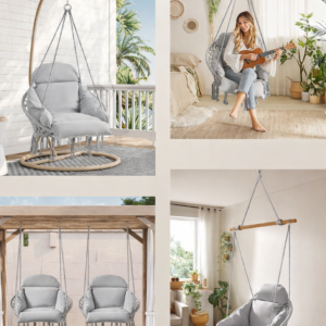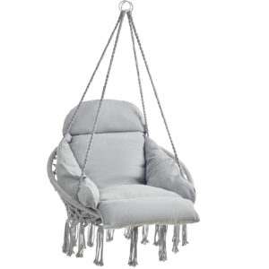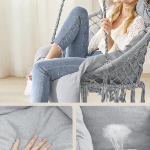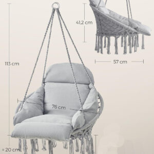 Scaunul suspendat SONGMICS aduce un plus de confort si stil in orice spatiu, fie ca este vorba despre living, balcon sau gradina. Designul modern cu influente boho si perna groasa transforma fiecare moment de relaxare intr-o experienta placuta si relaxanta.