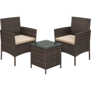 SONGMICS Set mobilier gradina cu 2 locuri, 2 scaune si masa cu sticla, ratan PE, maro SONGMICS Set mobilier gradina cu 2 locuri, 2 scaune si masa cu sticla, ratan PE, maro