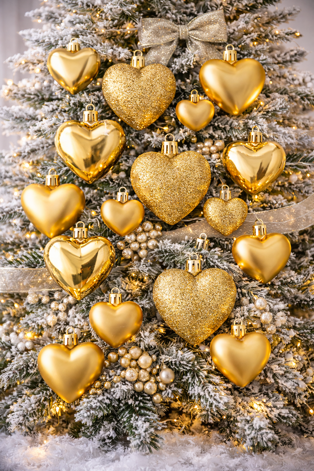 Set de globuri decorative in forma de inima, realizate din plastic rezistent, netrucabile si usor de agatat datorita snururilor incluse. Finisajele mixte – lucios, semimat si cu sclipici – aduc un aspect elegant si armonios oricarui brad sau aranjament decorativ. Dimensiunile variate permit combinarea lor pentru un efect vizual placut.