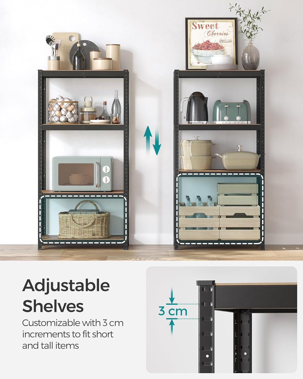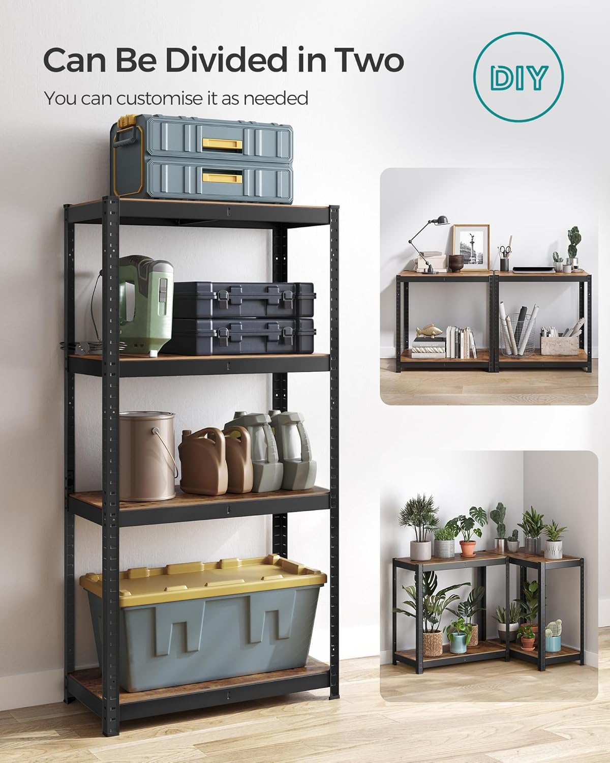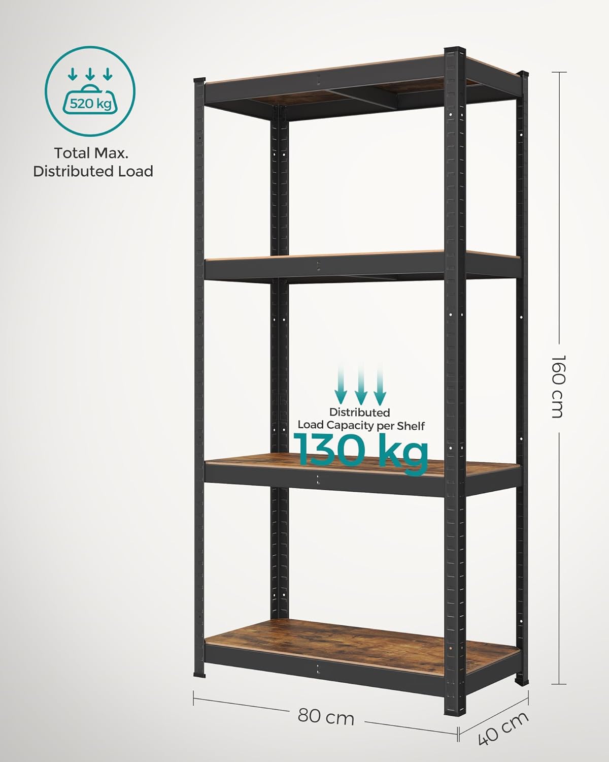 Organizeaza eficient spatiul cu acest raft metalic robust, ideal pentru depozitare in garaj, bucatarie sau living. Designul industrial si structura rezistenta il fac potrivit pentru sustinerea obiectelor grele.