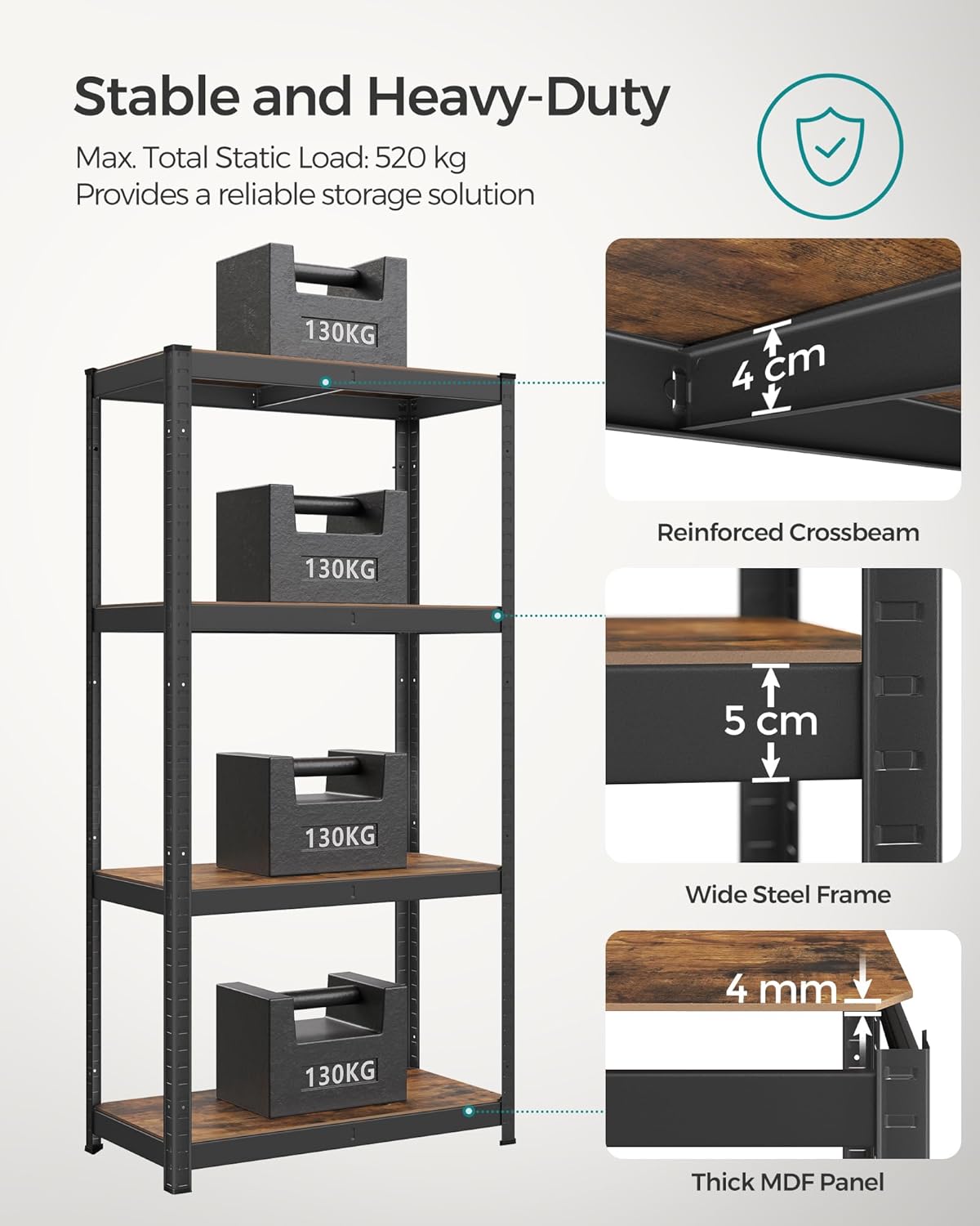 Capacitate per polita: 130 kg