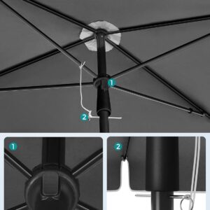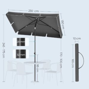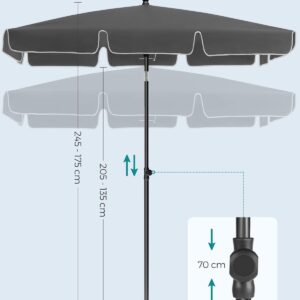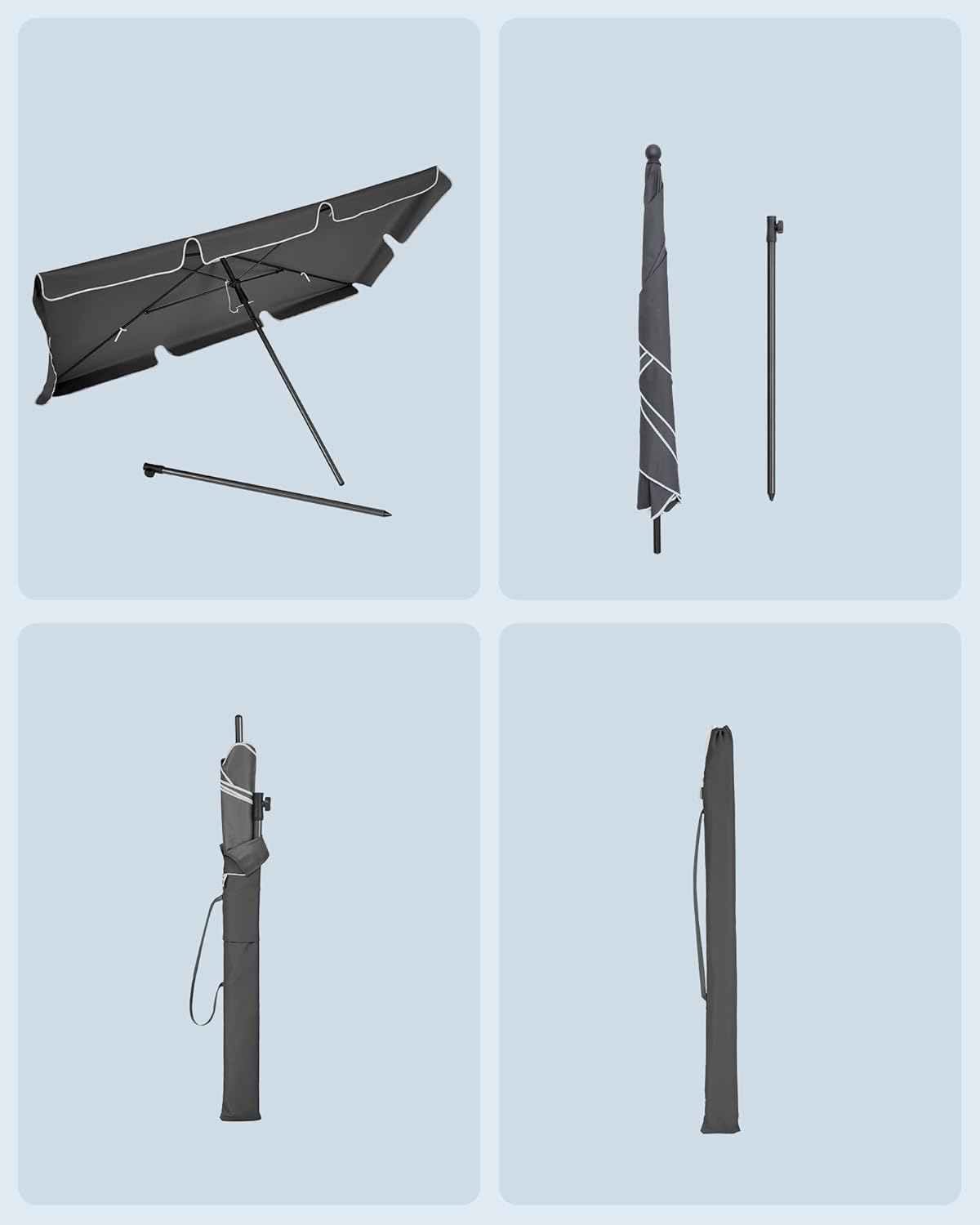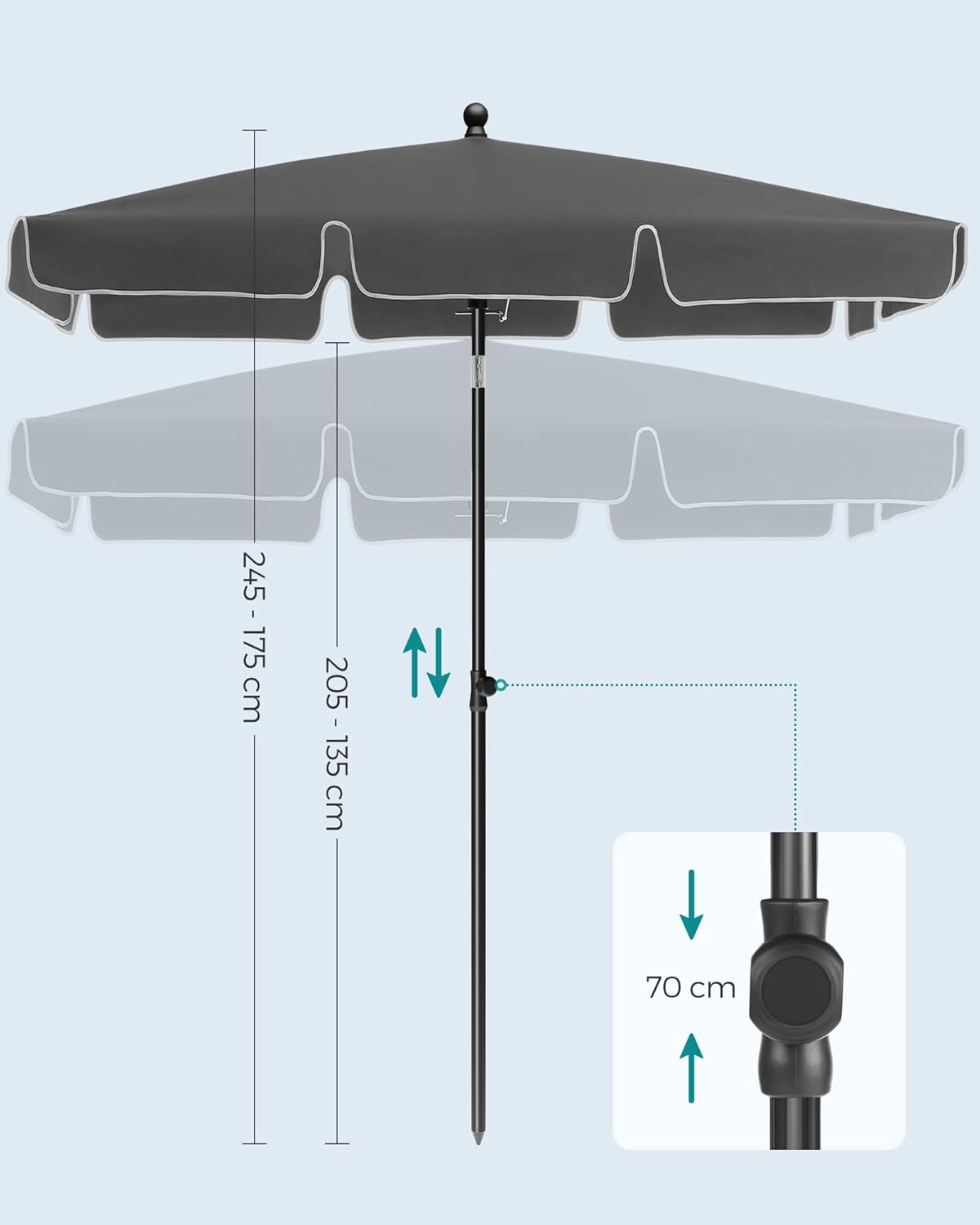 Umbrela SONGMICS este solutia ideala pentru a crea umbra si confort in zilele insorite. Datorita functiei de inclinare si reglare pe inaltime, o poti ajusta usor in functie de pozitia soarelui. Materialul rezistent ofera protectie eficienta impotriva razelor UV si a ploii usoare, fiind perfecta pentru gradina, terasa sau plaja.