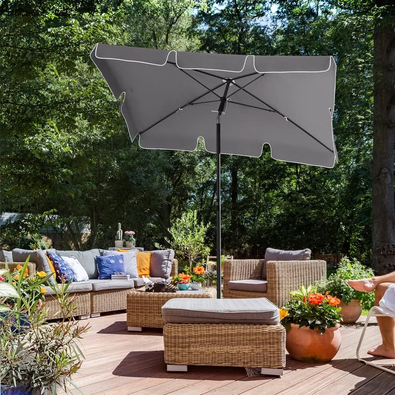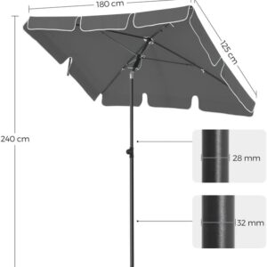 Umbrela SONGMICS este ideala pentru a crea rapid o zona de umbra confortabila in aer liber. Datorita functiei de reglare pe inaltime si inclinare, o poti ajusta usor in functie de pozitia soarelui. Materialul rezistent ofera protectie eficienta impotriva razelor UV si a ploii usoare, fiind potrivita pentru gradina, terasa sau balcon.