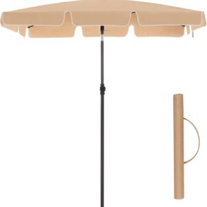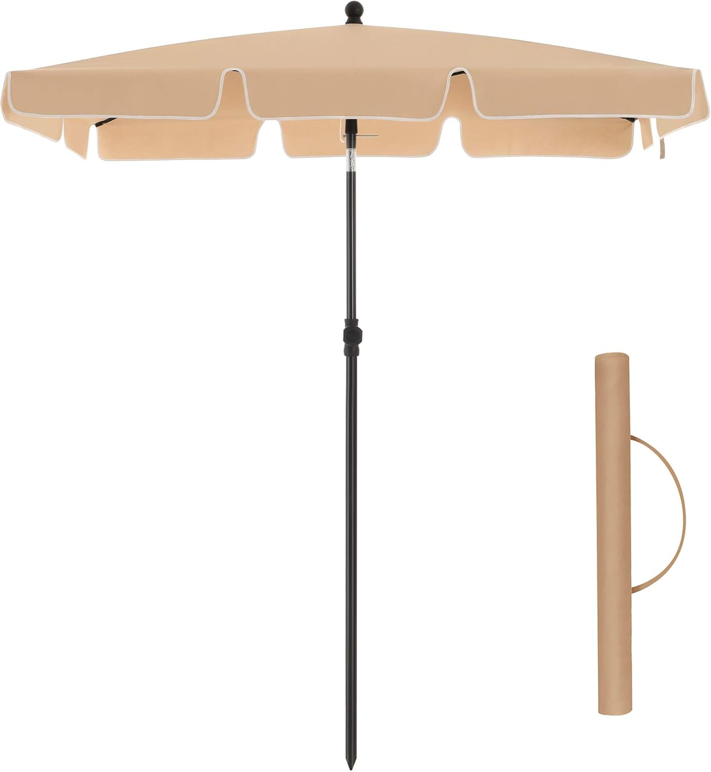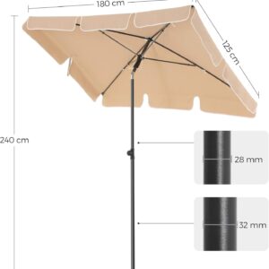 SONGMICS Umbrela terasa gradina sau plaja, inclinare 2 directii, protectie UV UPF 50+, 180×125 cm, maro taupe