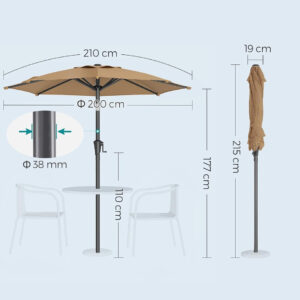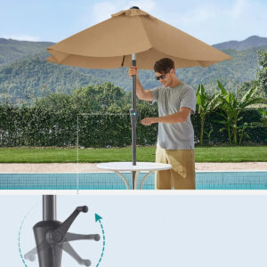 Aceasta umbrela de gradina compacta este ideala pentru balcon, terasa sau piscina, oferind umbra eficienta si protectie ridicata impotriva razelor UV. Designul reglabil iti permite sa te bucuri de confort pe tot parcursul zilei.