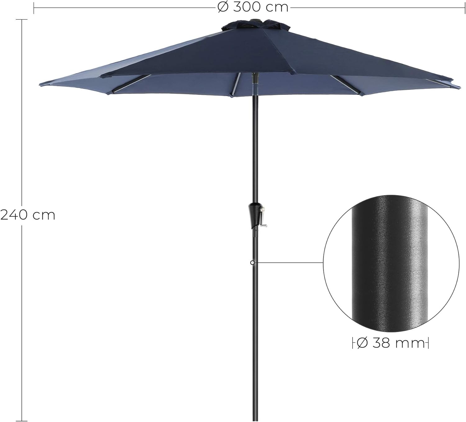 SONGMICS Umbrela de gradina, cu manivela pentru deschidere, sistem inclinare, 300cm, albastru inchis SONGMICS Umbrela de gradina, cu manivela pentru deschidere, sistem inclinare, 300cm, albastru inchis
