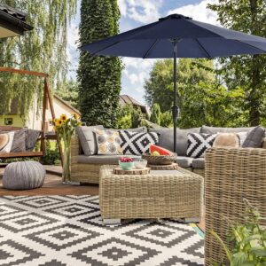 SONGMICS Umbrela de gradina, cu manivela pentru deschidere, sistem inclinare, 300cm, albastru inchis