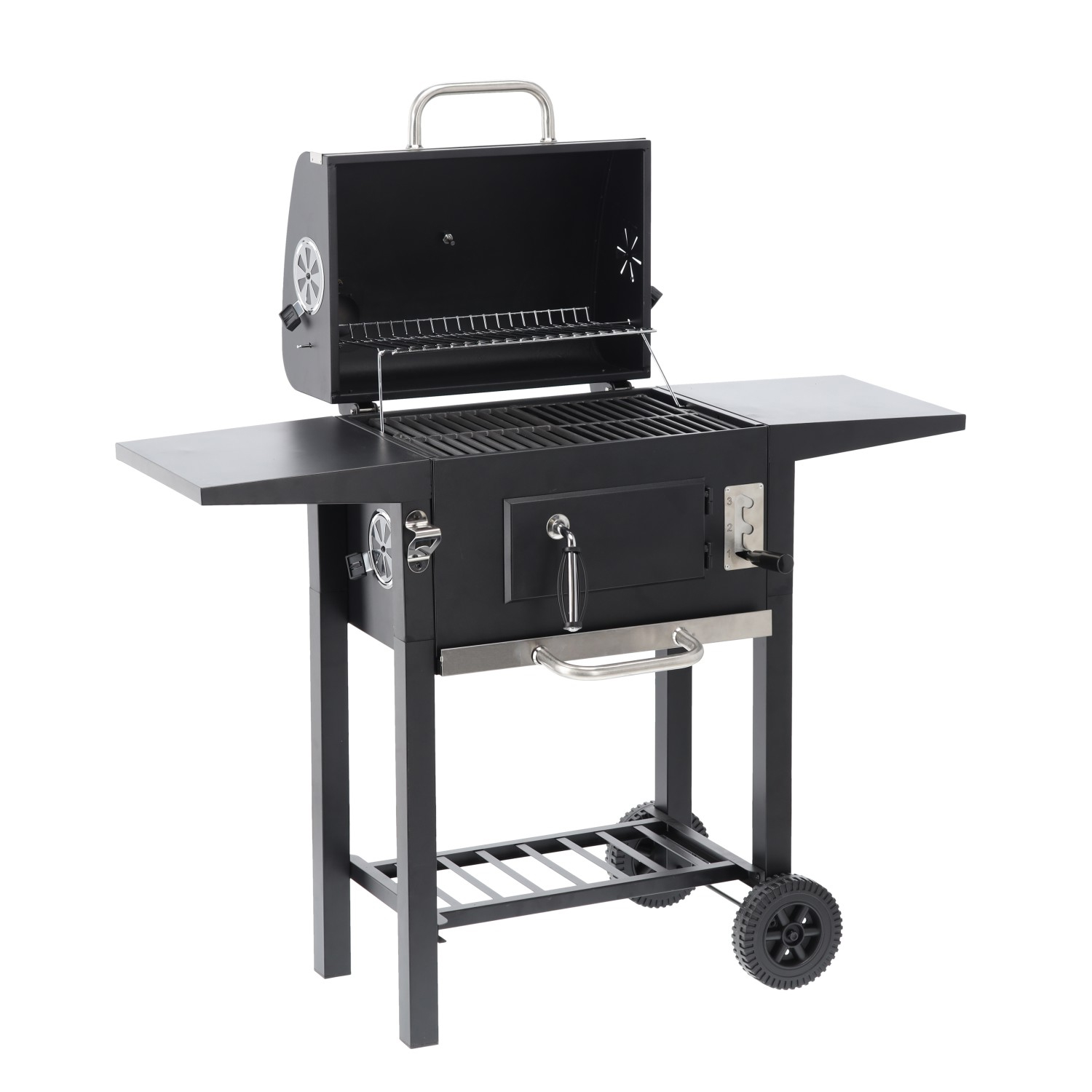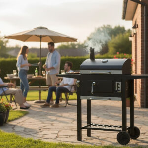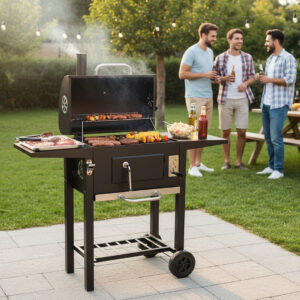 Gratarul pe carbuni este alegerea ideala pentru preparate savuroase in aer liber. Capacul cu termometru permite controlul temperaturii fara a intrerupe procesul de gatire, iar gratarul din fonta asigura distribuirea uniforma a caldurii. Perfect pentru gradina, terasa sau picnic.