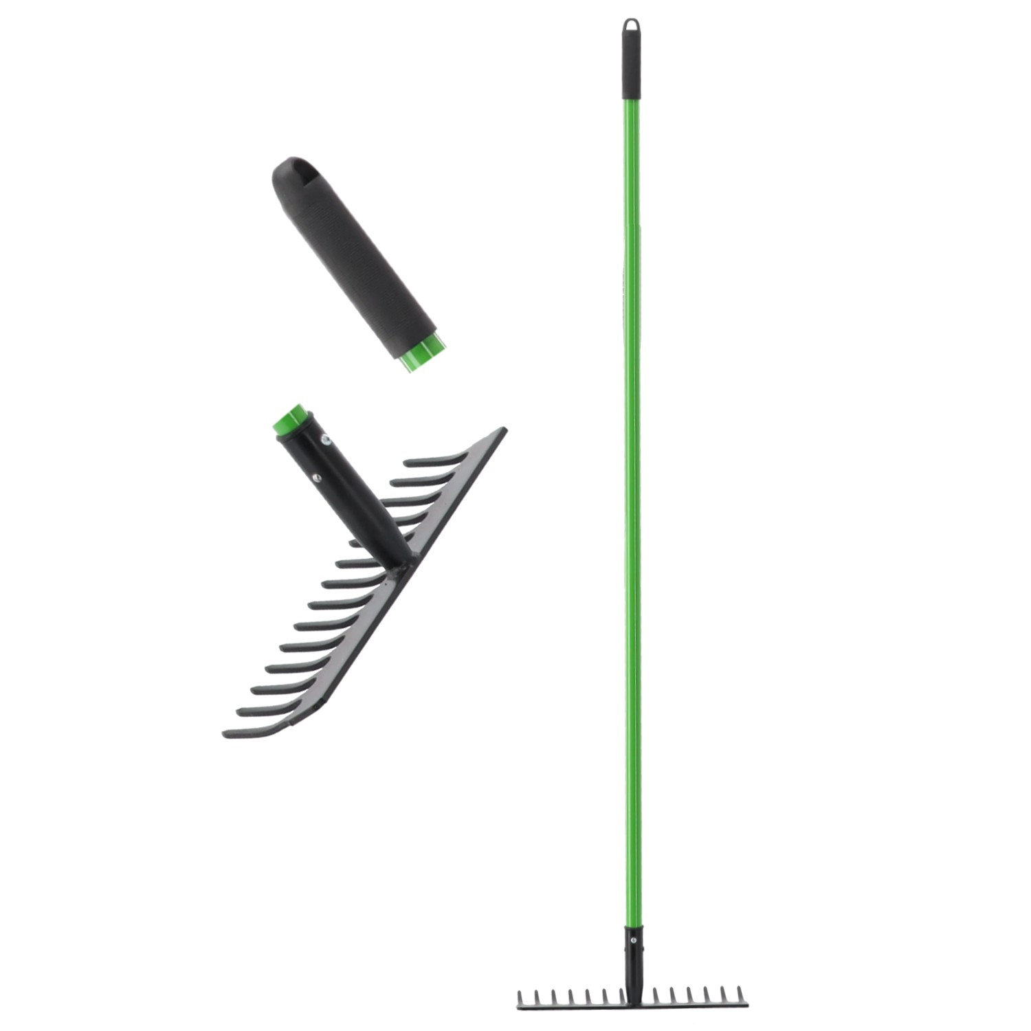 Grebla pentru gradina cu maner din fibra de sticla este un instrument rezistent si usor, ideal pentru curatarea frunzelor, nivelarea solului sau lucrari de intretinere in gradina. Capul din otel cu acoperire pulbere ofera durabilitate si protectie impotriva coroziunii, iar manerul din fibra de sticla asigura rezistenta si confort in utilizare. Designul ergonomic si protectia antiderapanta permit o prindere sigura si o utilizare eficienta in orice conditii.