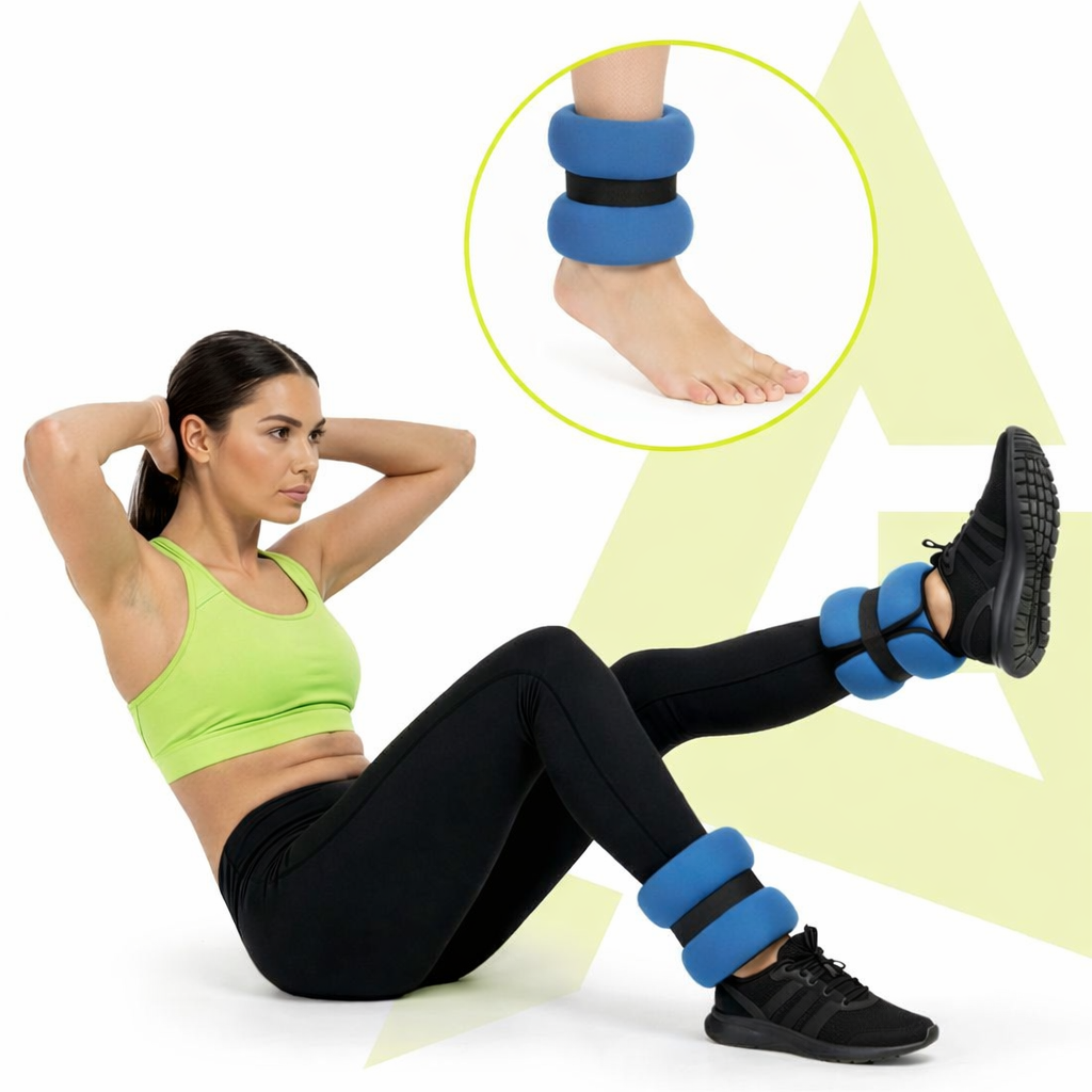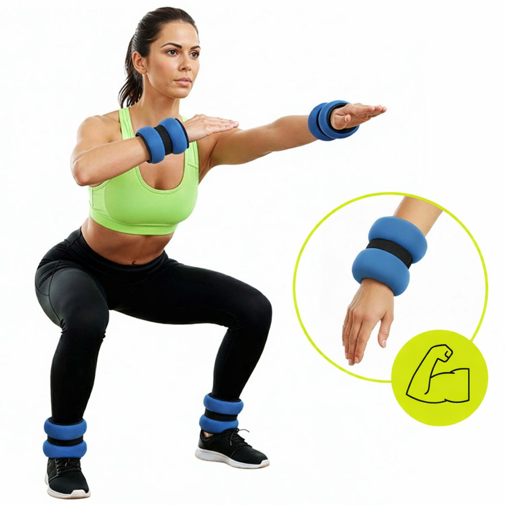 Setul de greutati pentru incheieturi 2 x 2 kg este ideal pentru antrenamente de forta, cardio si tonifiere. Fabricate din neopren rezistent si umplute cu nisip fier, ofera o distributie uniforma a greutatii si stabilitate buna in timpul exercitiilor. Sistemul reglabil cu velcro permite ajustare rapida si fixare sigura.