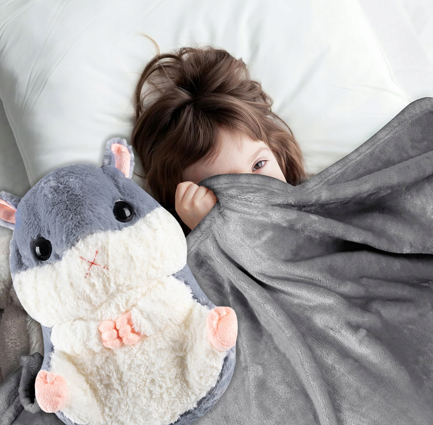 Hamster de plus moale si pufos, cu buzunar ascuns in care se afla o paturica mare si placuta la atingere. Ideal pentru joaca, imbratisat si momente de relaxare, atat pentru copii, cat si pentru adulti. Materialele sunt moi, sigure si confortabile.