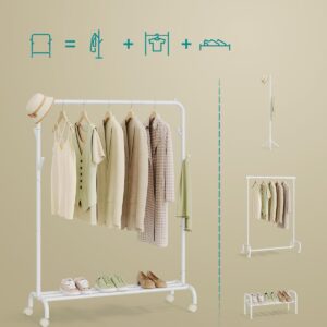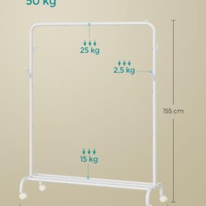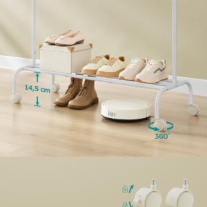 SONGMICS Suport haine metalic cu roti si raft inferior, stil industrial, 103x41x155 cm, alb