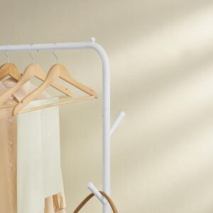 Suportul pentru haine SONGMICS este o solutie practica pentru organizarea eficienta a garderobei. Bara superioara permite agatarea hainelor de diferite lungimi, iar raftul inferior ofera spatiu suplimentar pentru cutii sau incaltaminte. Datorita rotilor pivotante, suportul poate fi mutat cu usurinta oriunde este nevoie.