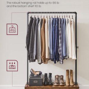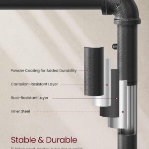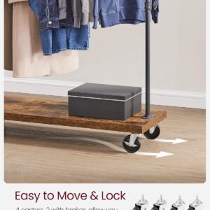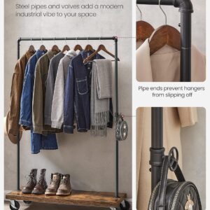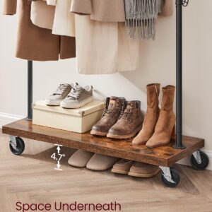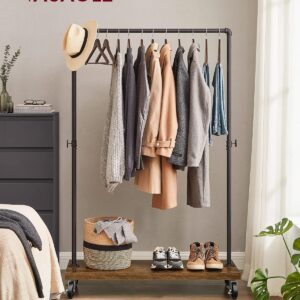 Suportul pentru haine VASAGLE combina designul industrial cu functionalitatea practica. Bara metalica rezistenta permite agatarea paltoanelor sau jachetelor groase, iar raftul inferior ofera spatiu pentru pantofi, cutii sau accesorii. Datorita rotilor, suportul poate fi mutat cu usurinta in dormitor, dressing sau magazin, iar franele integrate il mentin stabil atunci cand este necesar.