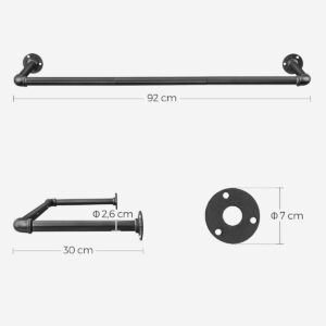SONGMICS Suport bara de perete pentru haine, stil industrial, metal, 92x30 cm, negru SONGMICS Suport bara de perete pentru haine, stil industrial, metal, 92x30 cm, negru