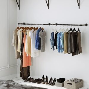 Suportul de perete SONGMICS este solutia practica pentru locuintele in care spatiul trebuie folosit inteligent. Designul inspirat de tevile industriale adauga personalitate incaperii, iar bara ofera suficient loc pentru umerase, jachete, rochii sau haine pregatite pentru ziua urmatoare. Este potrivit atat pentru uz casnic, cat si pentru expunere in magazin.