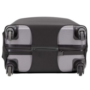 Husa elastica pentru valiza, conceputa pentru protectia bagajului in timpul calatoriilor. Materialul elastic se muleaza usor, iar sistemul de inchidere cu fermoar dublu si catarama asigura fixare stabila pe valiza.