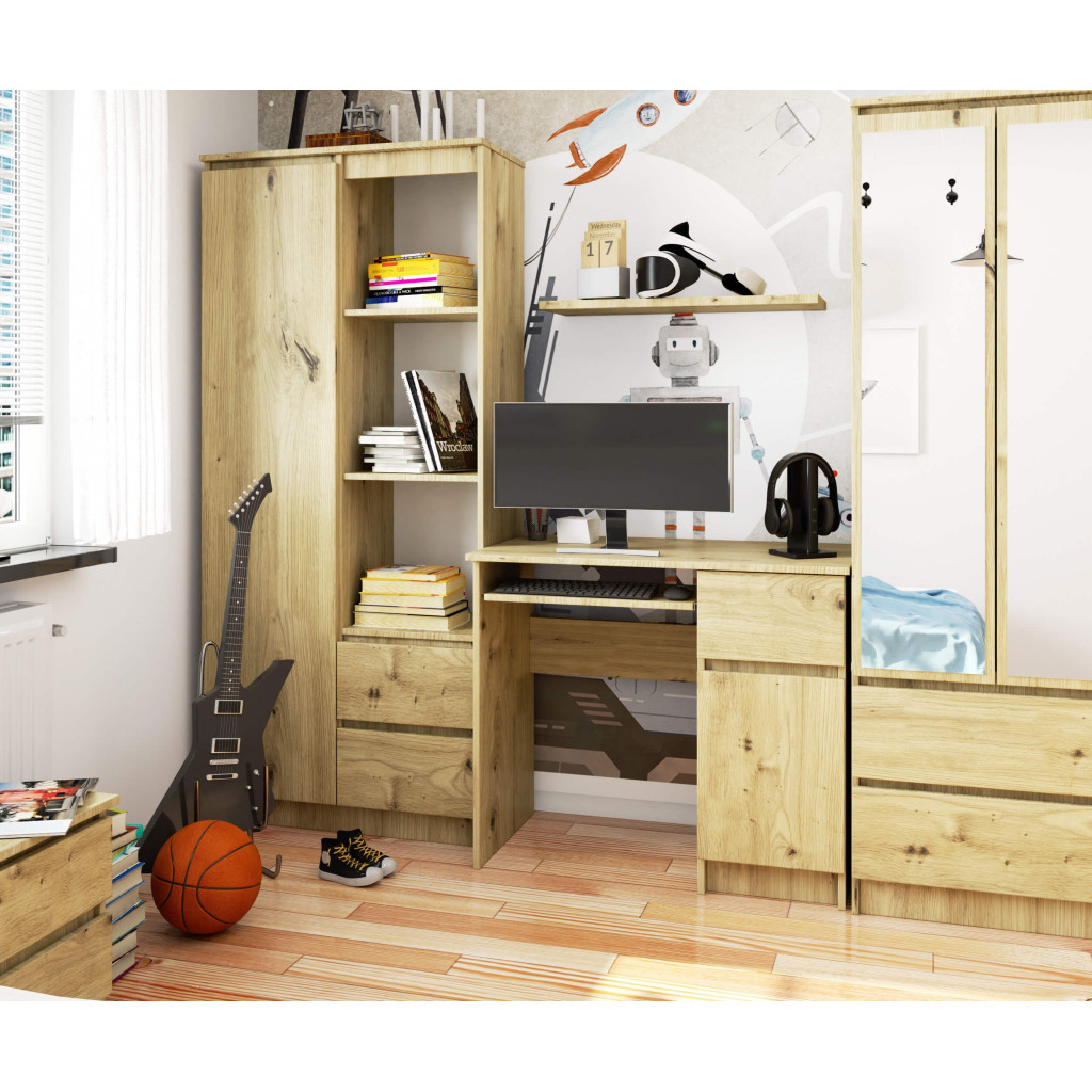 Biroul computer PIKSEL dreapta este o piesa functionala si moderna, ideala pentru spatii mici sau birouri compacte. Realizat din PAL laminat rezistent la uzura, se remarca prin nuanta naturala stejar artisan si finisajul mat elegant. Dispune de un sertar, o usa si o polita glisanta pentru tastatura, oferind spatiu practic pentru documente si accesorii. Designul solid si constructia durabila asigura utilizare de lunga durata.