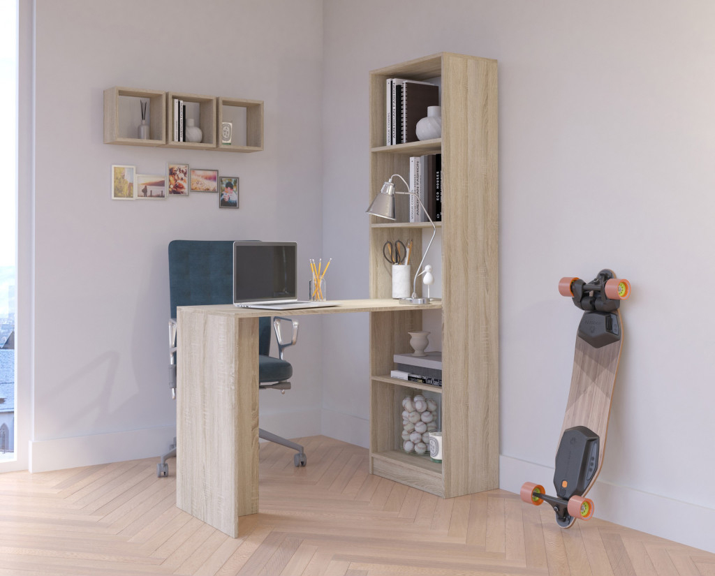Biroul cu raft SMART imbina eleganta si functionalitatea intr-o singura piesa de mobilier practica. Cu un design simplu si modern in finisaj stejar sonoma, acest birou ofera un spatiu de lucru confortabil si bine organizat, perfect pentru acasa sau pentru camera unui student. Raftul lateral inalt ofera loc suplimentar pentru carti, dosare si decoratiuni, contribuind la mentinerea ordinii.