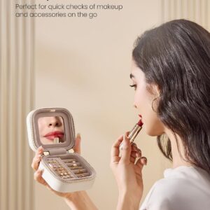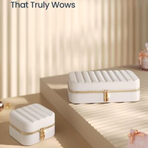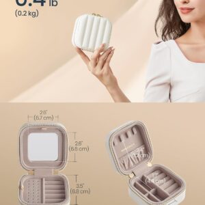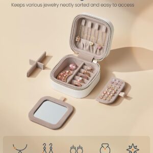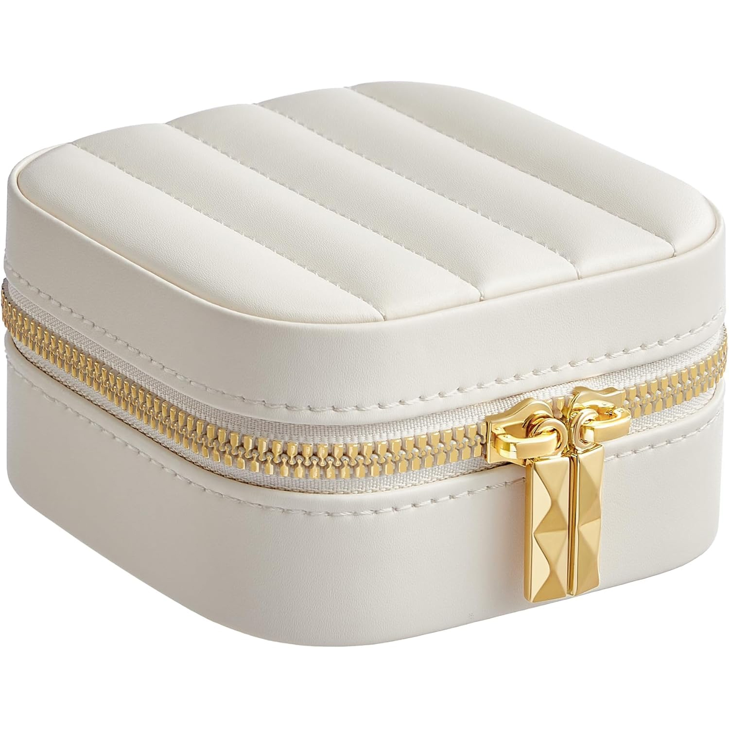 Cutia de bijuterii SONGMICS compacta este alegerea ideala pentru pastrarea accesoriilor in siguranta, chiar si in deplasare. Designul elegant cu finisaj din piele ecologica si detalii decorative o transforma intr-un accesoriu practic si estetic. Interiorul bine compartimentat si oglinda integrata ofera confort si organizare eficienta.