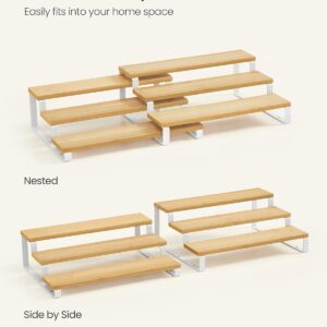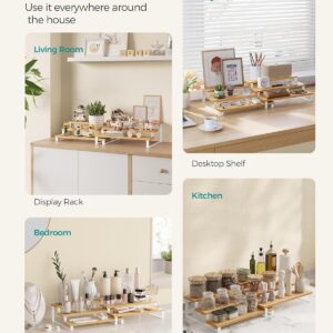 Organizatorul pentru condimente SONGMICS este solutia practica pentru o bucatarie ordonata si eficienta. Designul extensibil permite ajustarea in functie de spatiu, iar constructia din bambus ofera un aspect natural si elegant. Poate fi folosit pe blat sau in dulap, fiind ideal pentru depozitarea condimentelor si a altor recipiente mici.