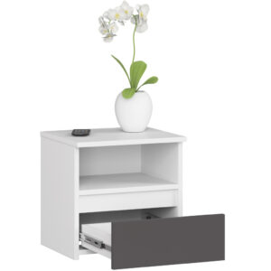 Comoda CL1 in nuanta alb/gri grafit este o piesa moderna si practica, potrivita pentru orice dormitor sau camera de tineret. Cu un design simplu si elegant, aceasta ofera spatiu util pentru depozitare si se integreaza usor in decoruri minimaliste sau contemporane.