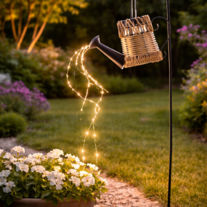 Lampa solara decorativa tip stropitoare cu design din ratan este un element elegant pentru iluminarea gradinii, terasei sau aleilor. Cele 33 LED-uri cu lumina alb cald creeaza un efect decorativ spectaculos ce imita apa care curge din stropitoare, oferind o atmosfera placuta dupa lasarea serii. Functioneaza pe baza de energie solara, incarcandu-se pe timpul zilei si iluminand automat pe timpul noptii.