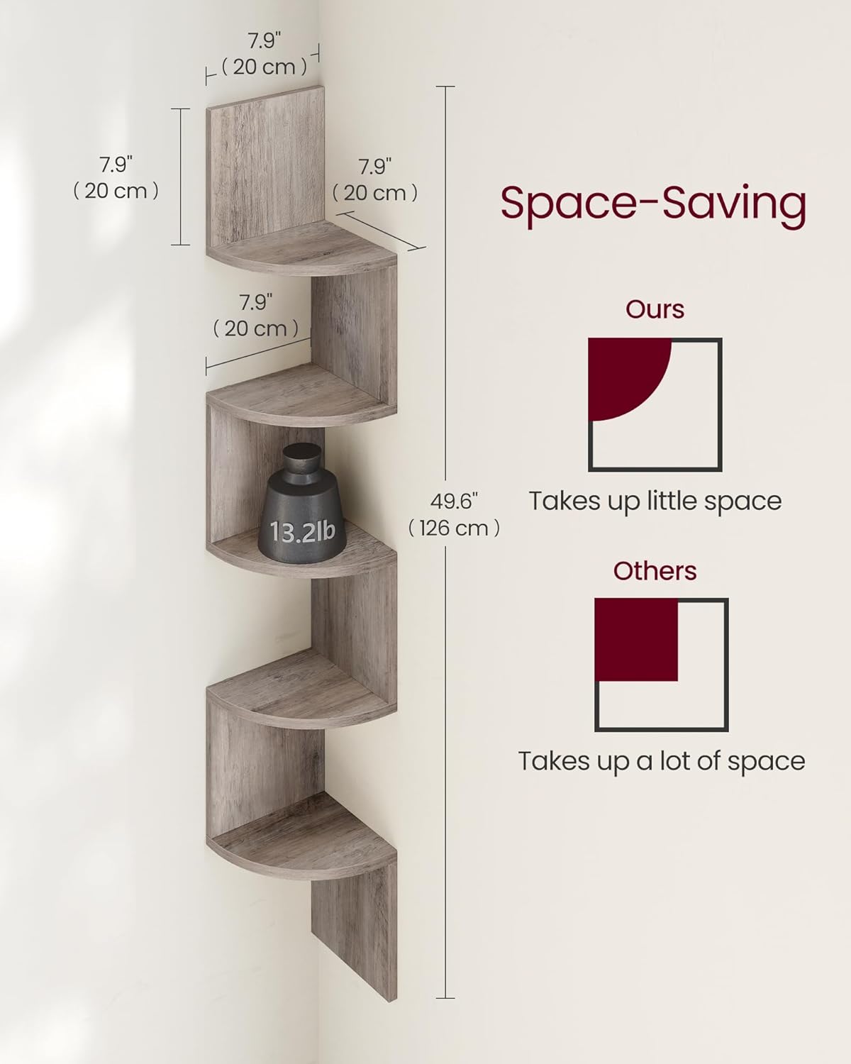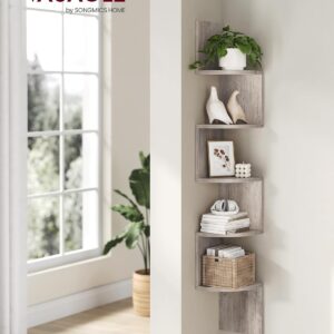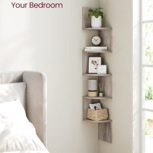 VASAGLE Raft de colt plutitor pe 5 niveluri, din lemn, 20x20x128cm, gri