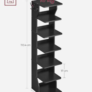 Etajera de pantofi VASAGLE este solutia ideala pentru organizarea eficienta in spatii inguste. Cu un design slim si 7 niveluri de depozitare, permite pastrarea ordonata a incaltamintei fara a ocupa mult loc. Este potrivita pentru holuri mici sau apartamente unde fiecare centimetru conteaza.