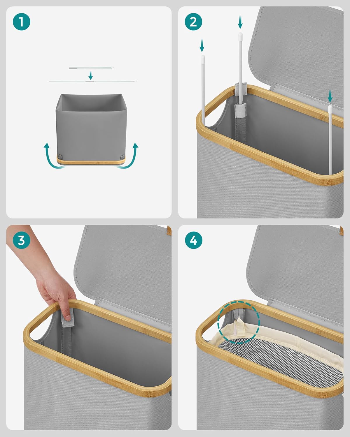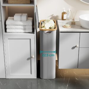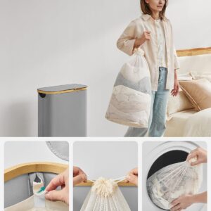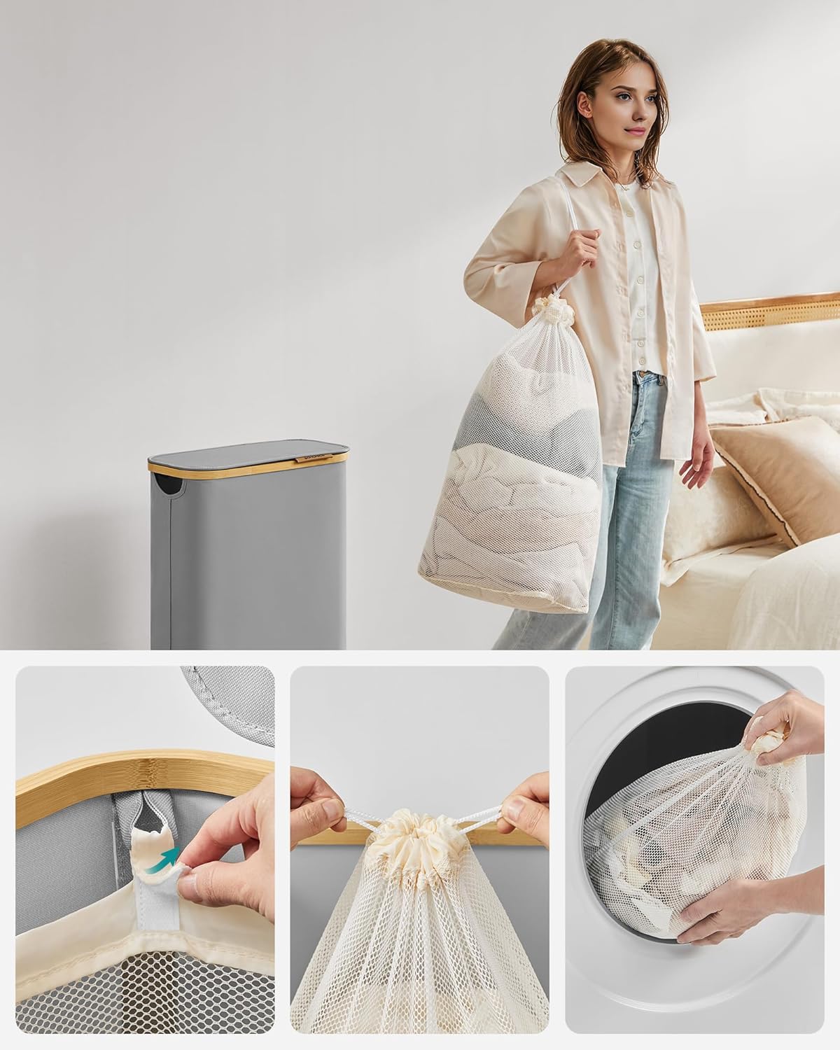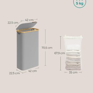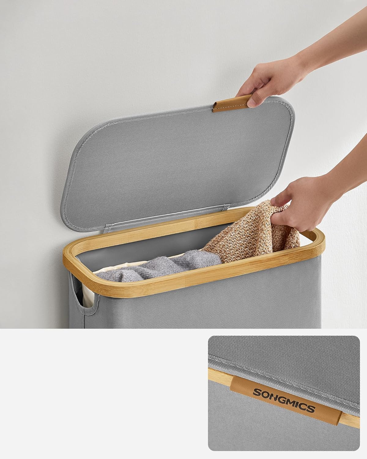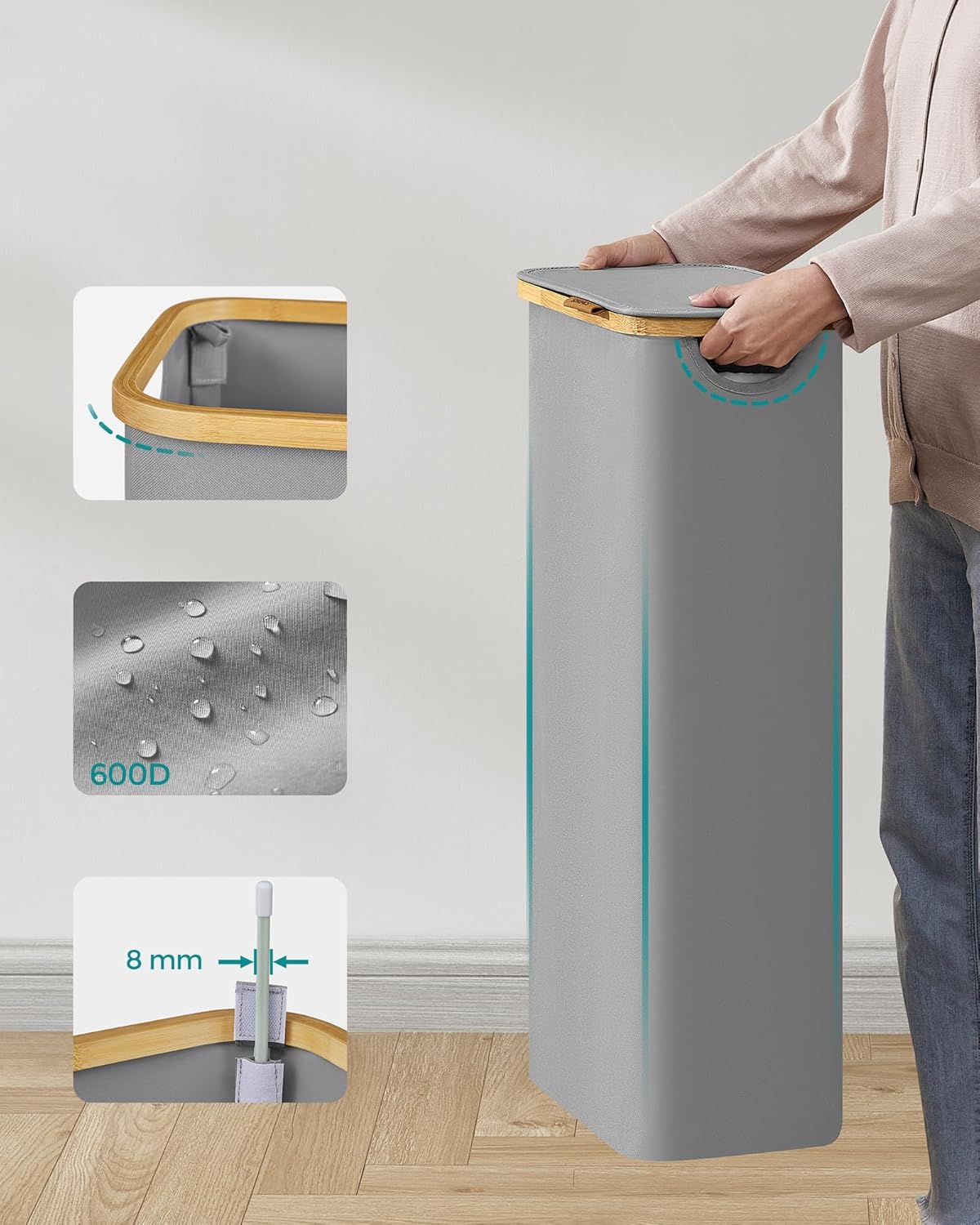 Cosul de rufe SONGMICS este ideal pentru spatii inguste, oferind o solutie practica si eleganta pentru organizarea hainelor murdare. Cu un design slim si capacitate generoasa de 65L, se integreaza perfect in bai sau camere mici. Sacul interior detasabil si materialele rezistente il fac usor de utilizat zi de zi.