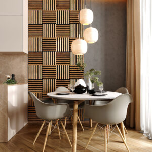 Adauga eleganta si functionalitate spatiului tau cu un panou decorativ acustic tip riflaj, realizat din MDF premium si montat pe un suport PET netesut reciclat. Cu un finisaj sofisticat si un design modern, acest panou este ideal pentru perete sau tavan, in locuinte, birouri sau spatii comerciale. Structura sa acustica ajuta la reducerea zgomotului ambiental, oferind in acelasi timp un aspect vizual rafinat. Se instaleaza usor (multiple variante de fixare: adeziv, holsuruburi, etc) si permite acoperirea suprafetelor fara imbinari vizibile, asigurand un rezultat continuu si uniform. Este o alegere excelenta pentru cei care doresc sa imbina designul contemporan cu un produs sustenabil, realizat in Uniunea Europeana din materiale reciclabile.