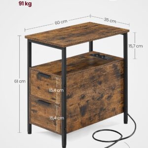Noptiera VASAGLE combina designul modern cu functionalitatea inteligenta. Dotata cu priza integrata si porturi USB, iti permite sa iti incarci dispozitivele direct langa pat sau canapea. Spatiile de depozitare includ sertare, rafturi si un suport pentru reviste, oferind organizare eficienta intr-un format compact.