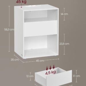 VASAGLE Noptiera cu sertar si statie de incarcare, 2 prize, 2 porturi USB, 45x35x58 cm, alb VASAGLE Noptiera cu sertar si statie de incarcare, 2 prize, 2 porturi USB, 45x35x58 cm, alb
