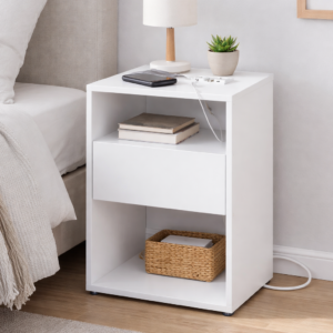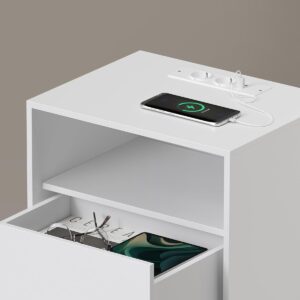 Noptiera VASAGLE este conceputa pentru confort zilnic si organizare eficienta. Sistemul de asamblare fara unelte permite montaj rapid, iar statia de incarcare integrata iti ofera acces facil la energie direct langa pat. Designul modern si culoarea alb mat se integreaza usor in orice dormitor.