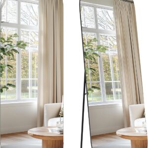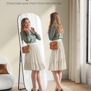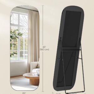 SONGMICS Oglinda podea cu colturi rotunjite, rama aluminiu, sticla securizata, 160×50 cm, negru