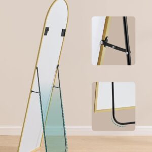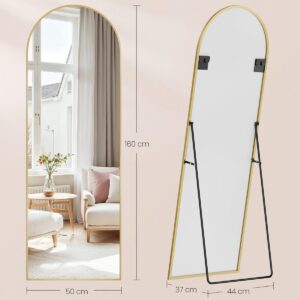 SONGMICS Oglinda podea, cu rama aluminiu si sticla securizata, design curbat, 160×50 cm, auriu