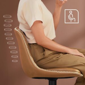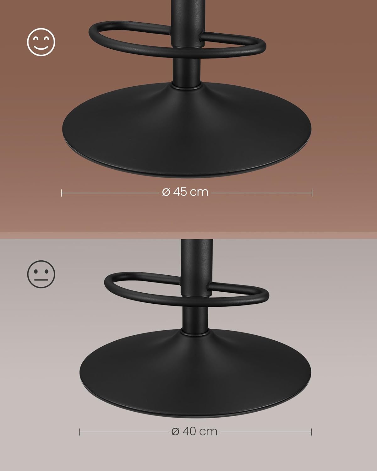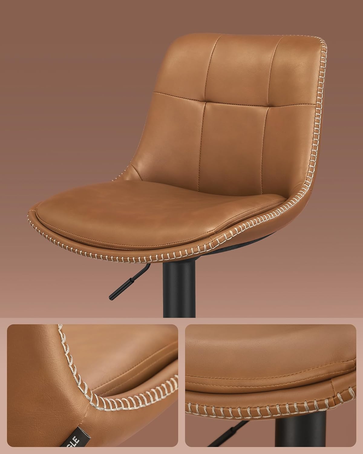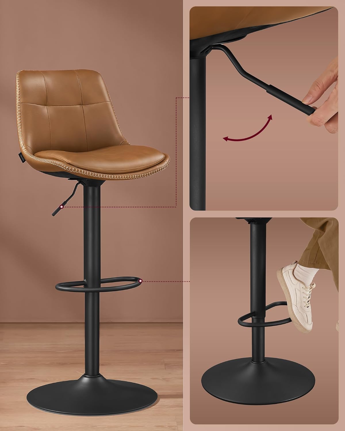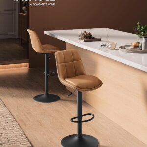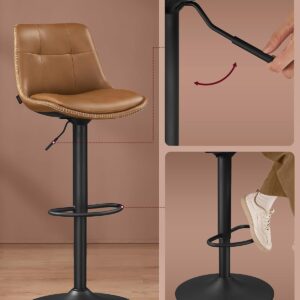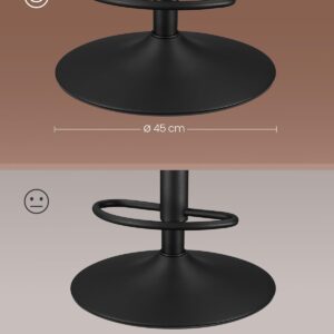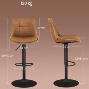 Setul de 2 scaune de bar VASAGLE ofera confort si flexibilitate datorita functiei de reglare pe inaltime si rotatie completa. Tapiteria din PU si designul ergonomic cu spatar asigura o experienta placuta, iar cadrul metalic stabil garanteaza durabilitate in utilizare zilnica.