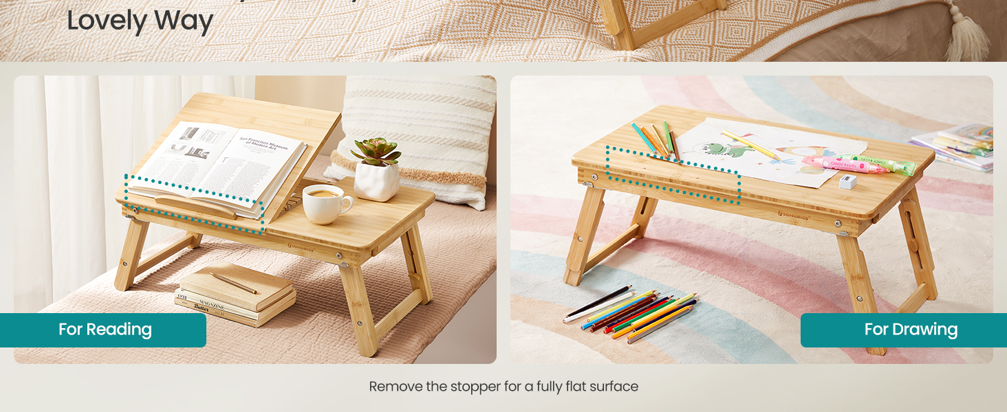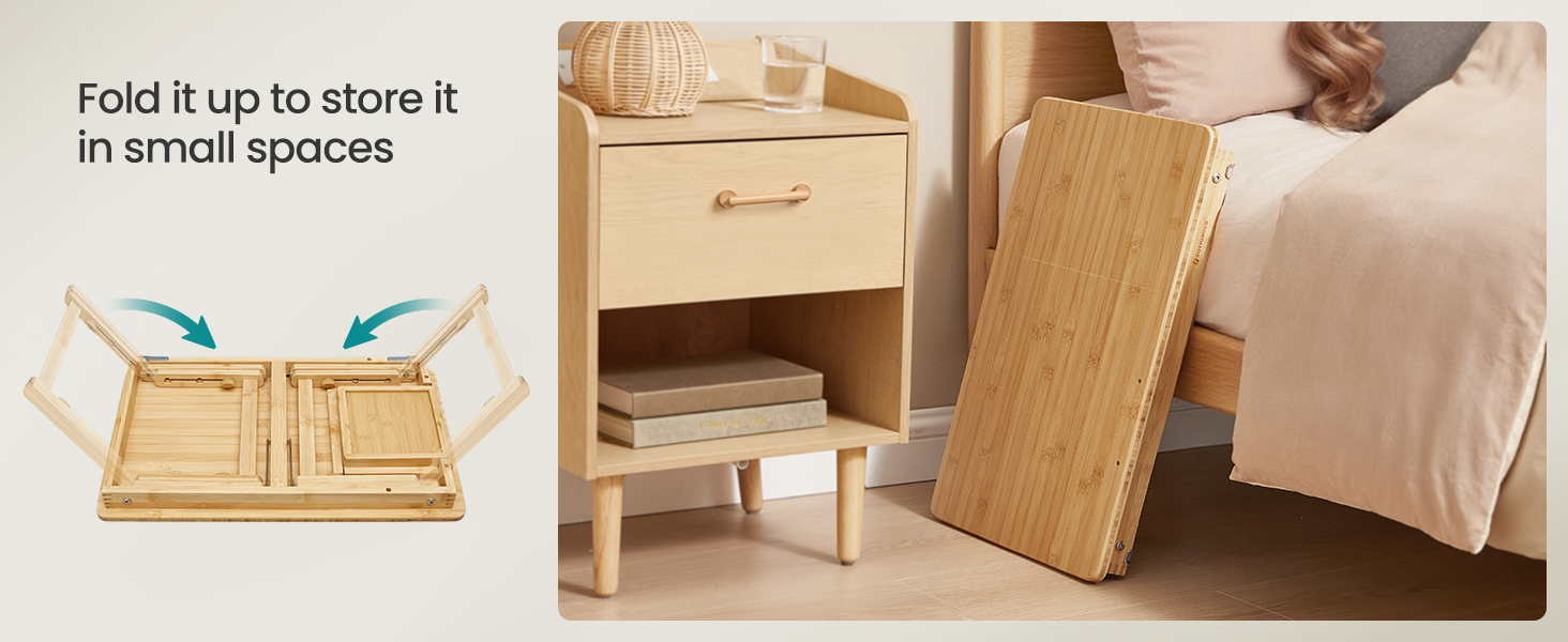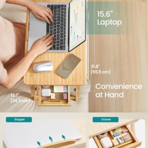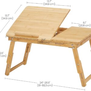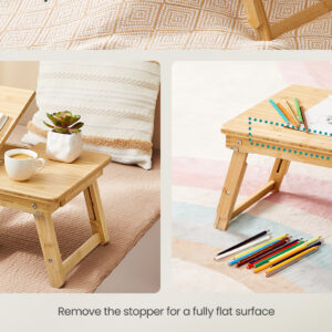 Masuta laptop SONGMICS din bambus este ideala pentru lucru, citit sau mic dejun la pat. Reglabila pe inaltime si unghi, ofera confort si stabilitate, fiind usor de pliat si depozitat. Sertarul lateral adauga un plus de functionalitate.