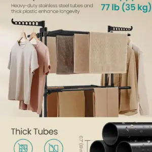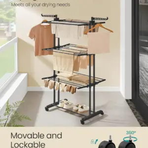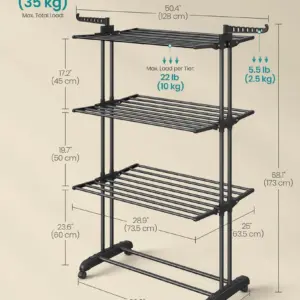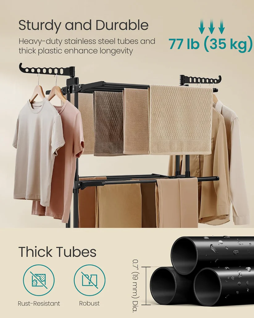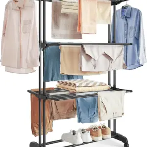 Uscator de rufe pliabil cu 4 niveluri, conceput pentru uscarea eficienta a unei cantitati mari de haine. Structura stabila din inox si plastic rezistent permite utilizarea zilnica, iar rotile integrate faciliteaza mutarea usoara intre spatii.