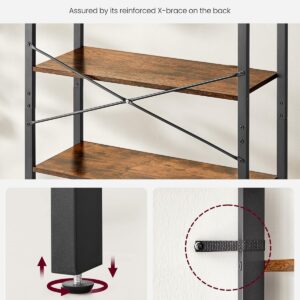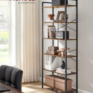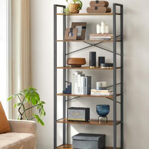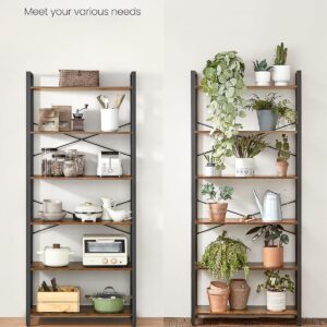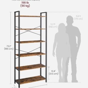 VASAGLE Biblioteca cu 6 rafturi, etajera stil industrial, PAL si cadru metalic, 30x80x186 cm, maro rustic
