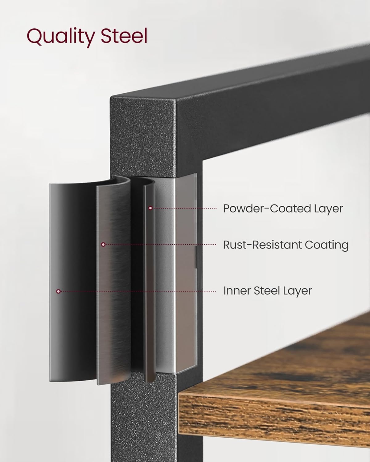 Biblioteca VASAGLE cu 6 rafturi imbina eleganta stilului industrial cu functionalitatea practica. Construita din PAL rezistent si cadru metalic solid, ofera un spatiu vertical generos pentru carti, decoratiuni sau dosare, fara a ocupa mult loc la sol.