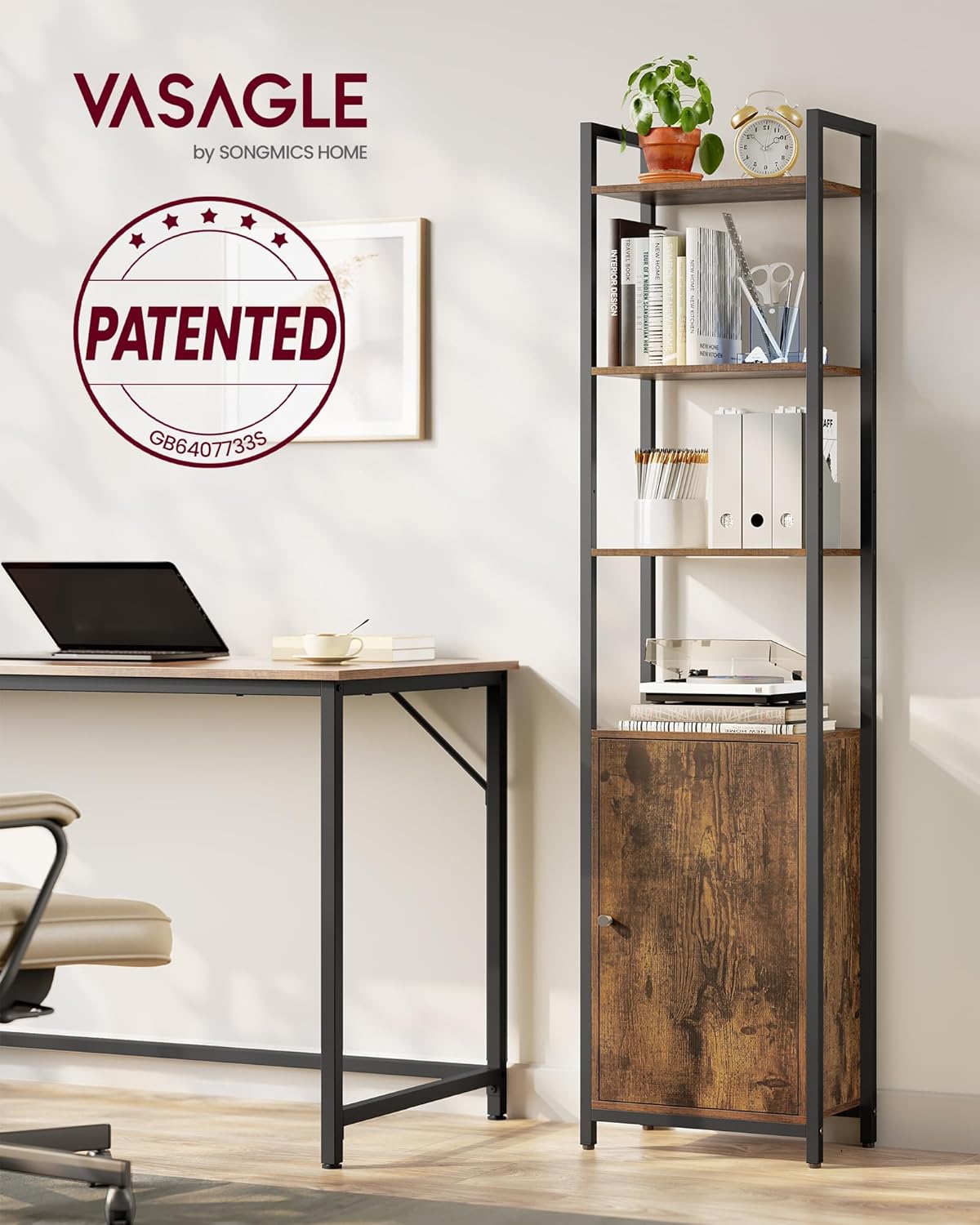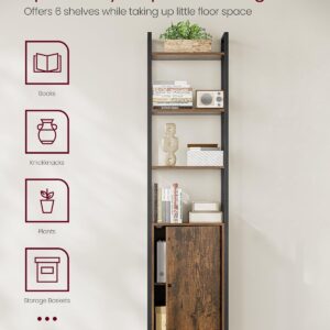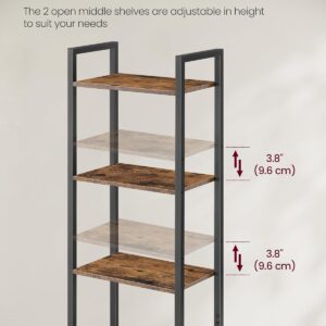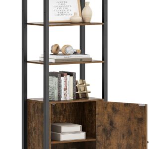 Biblioteca VASAGLE cu 6 niveluri imbina depozitarea deschisa cu spatiul inchis, oferind flexibilitate pentru organizarea cartilor, obiectelor decorative sau textilelor. Designul vintage, cu PAL maro rustic si cadru metalic negru, se integreaza usor in living, dormitor sau birou. Rafturile reglabile permit adaptarea spatiului in functie de dimensiunea obiectelor.