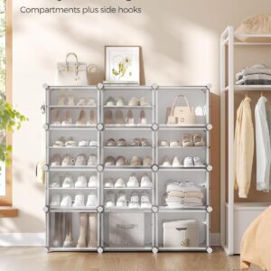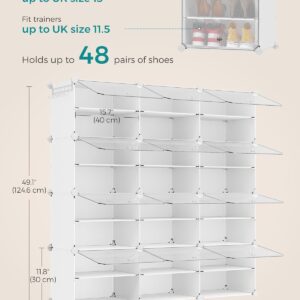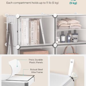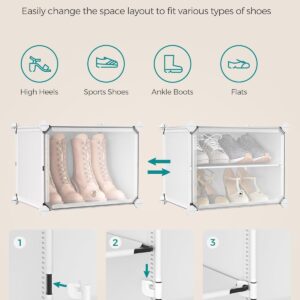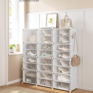 Dulapul de pantofi SONGMICS cu 12 compartimente ofera o solutie practica pentru organizarea incaltamintei si a accesoriilor. Structura modulara permite configurarea flexibila, iar usile transparente protejeaza continutul de praf, asigurand in acelasi timp ventilarea. Este potrivit pentru hol, dormitor sau zona de intrare.