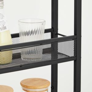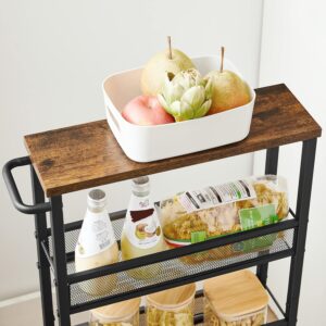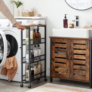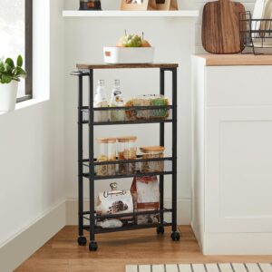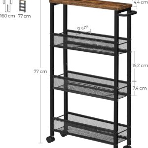 VASAGLE Carucior de bucatarie ingust cu roti, 4 niveluri, cadru metalic, 13x47x77 cm, maro rustic