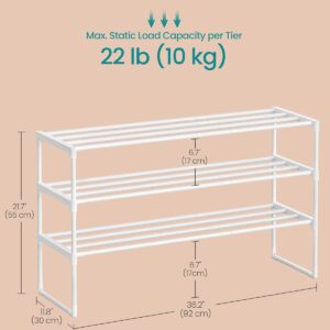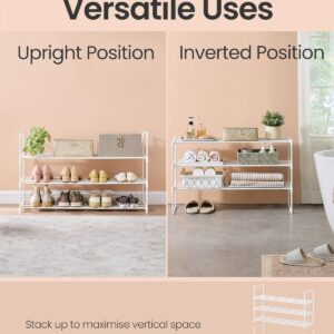 Raftul pentru pantofi cu 3 niveluri este ideal pentru organizarea eficienta a incaltamintei. Designul versatil permite utilizarea in mai multe moduri, iar structura metalica asigura stabilitate si durabilitate in utilizare zilnica.