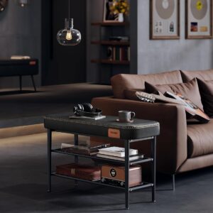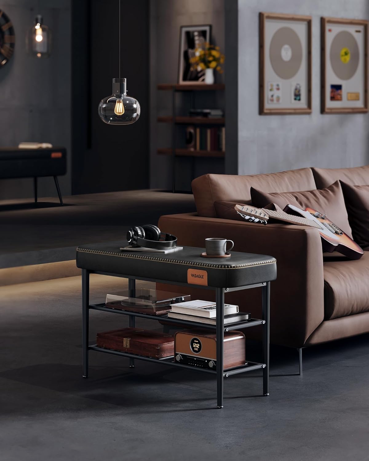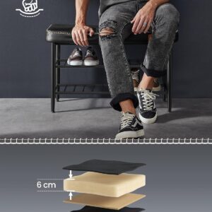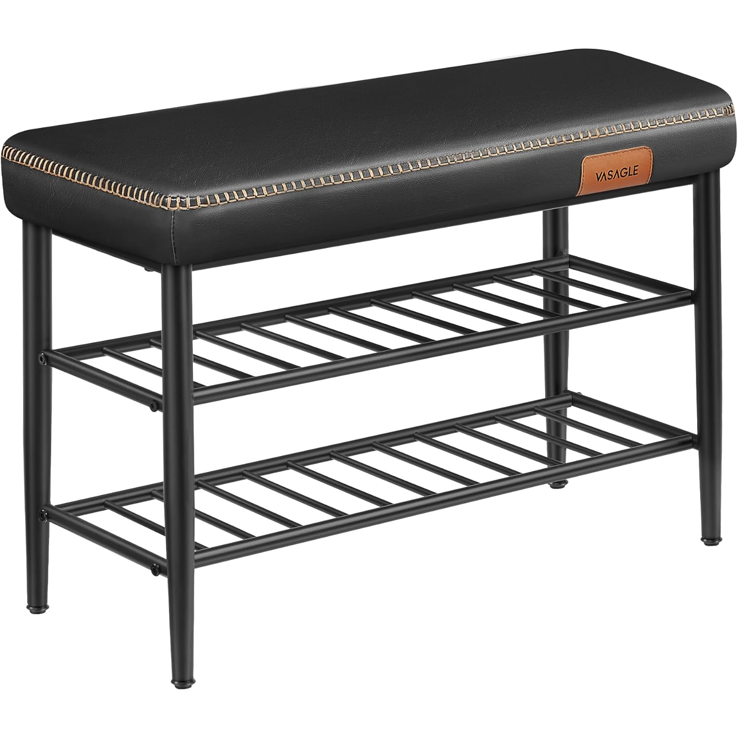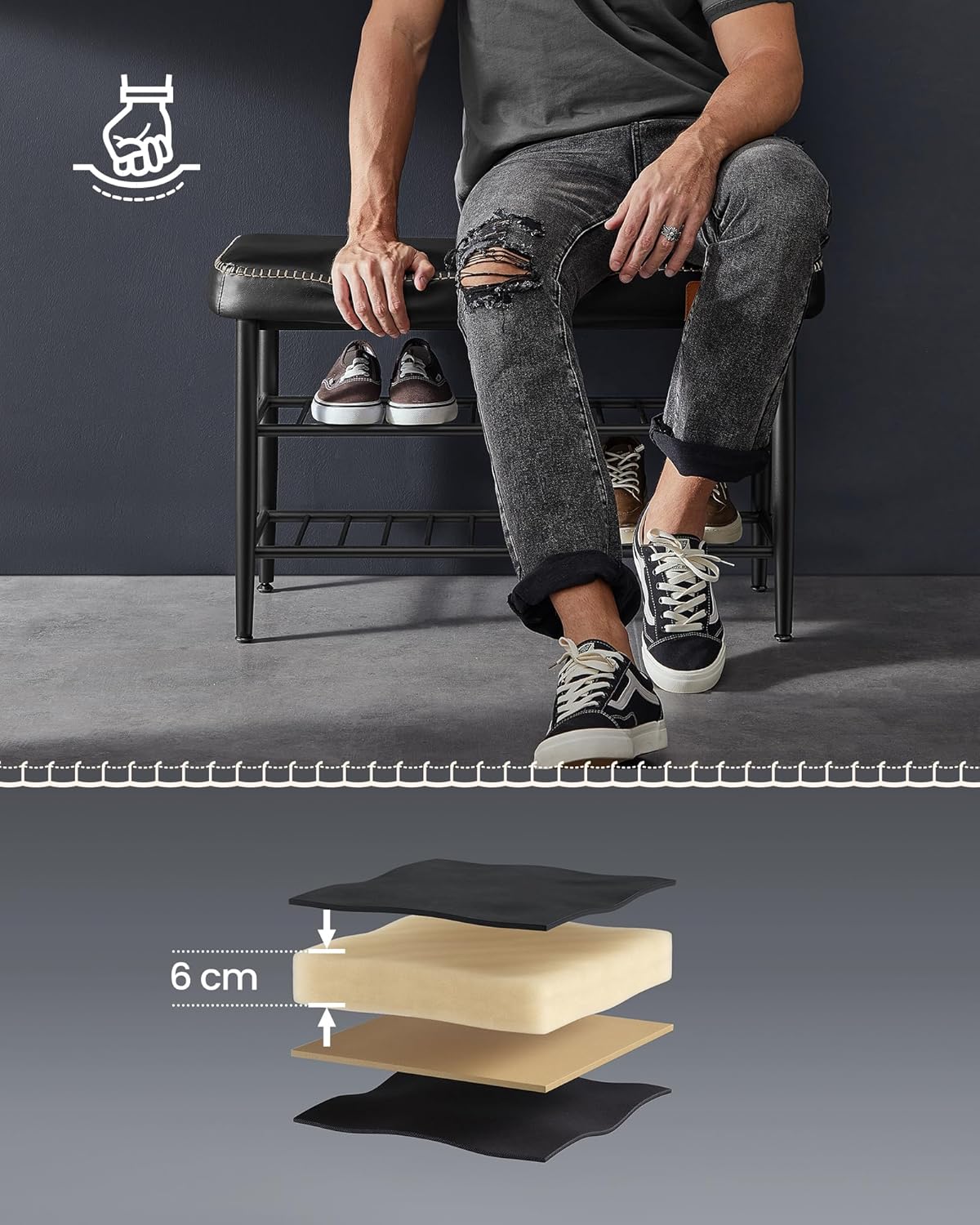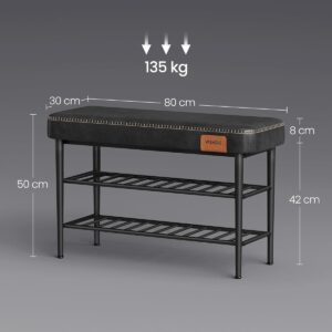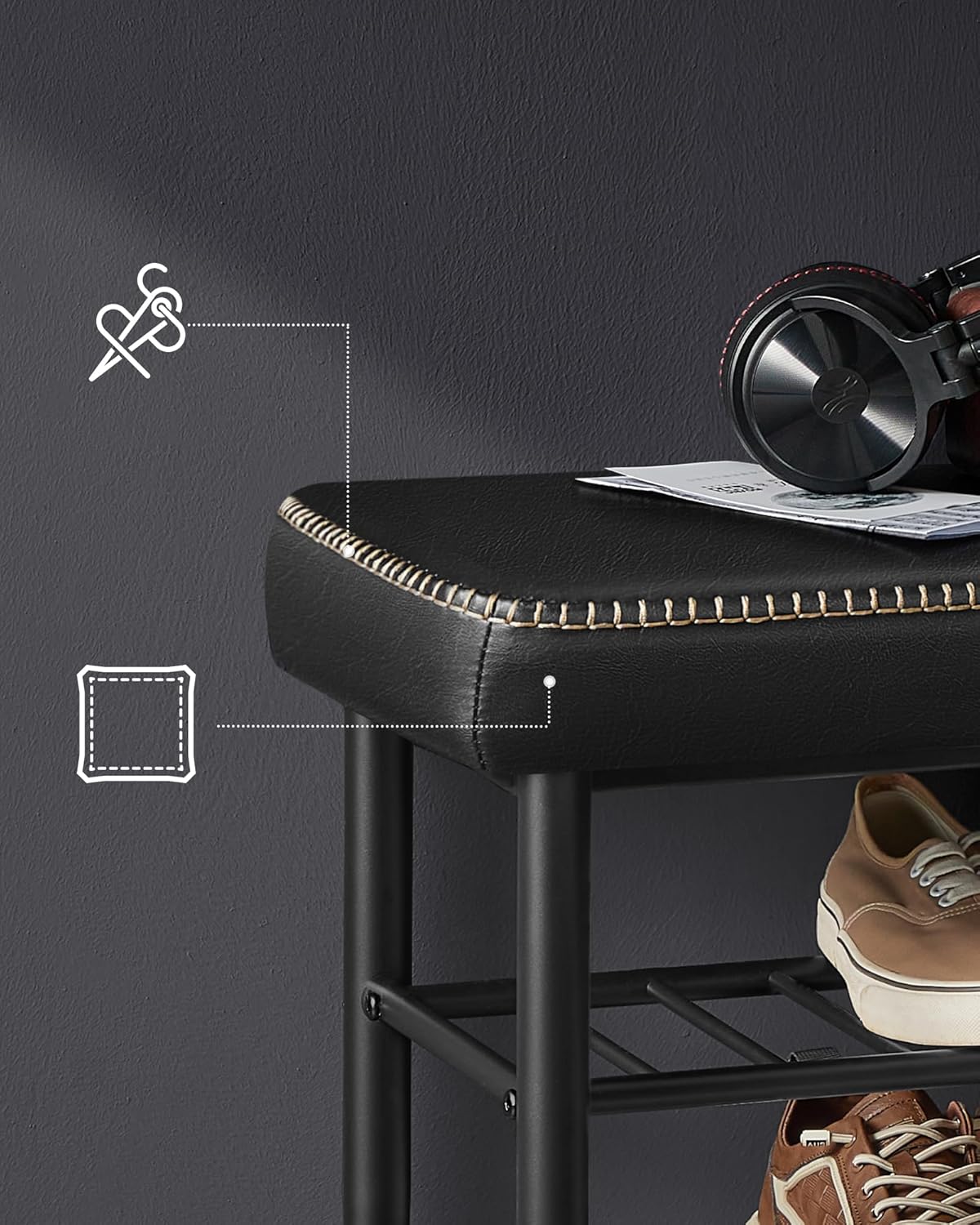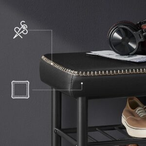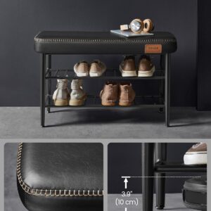 VASAGLE Banca pentru pantofi EKHO cu spatiu depozitare, sezut tapitat PU cu cusaturi, 80x30x50 cm, negru